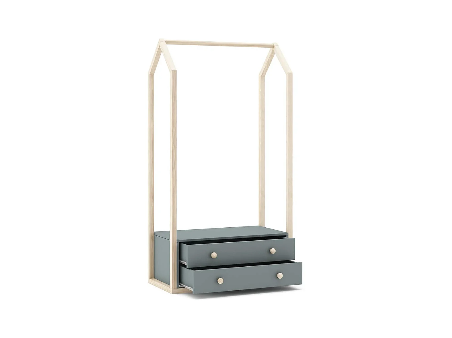 KAINA - Pack Lit Bébé Cabane 60x120cm + Commode + Penderie Coloris Gris et Naturel