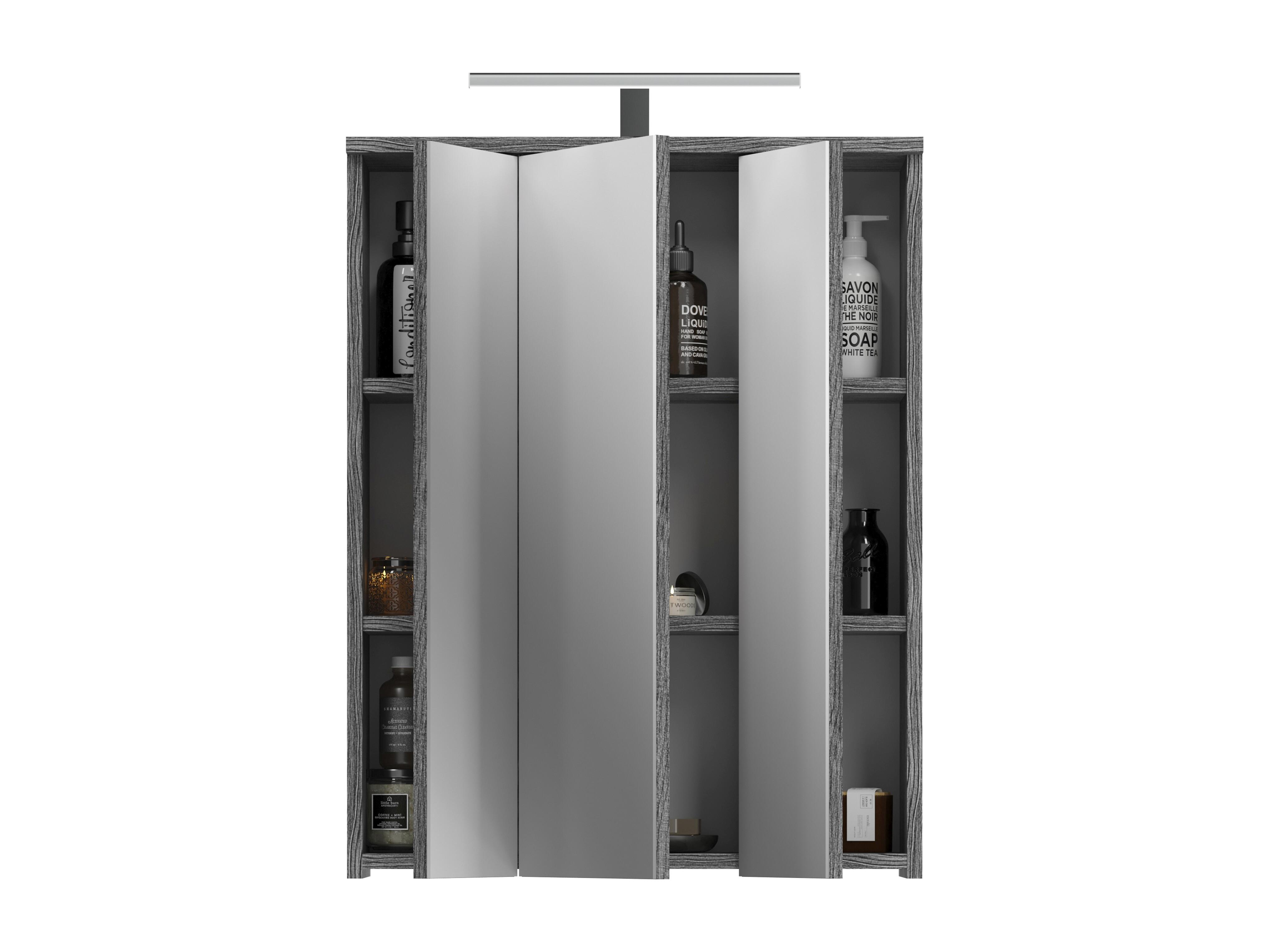 Kaleb - Armoire de toilette en mélaminé blanc et argenté avec miroir, éclairage inclu (L/H/P : 64x77x21 cm)