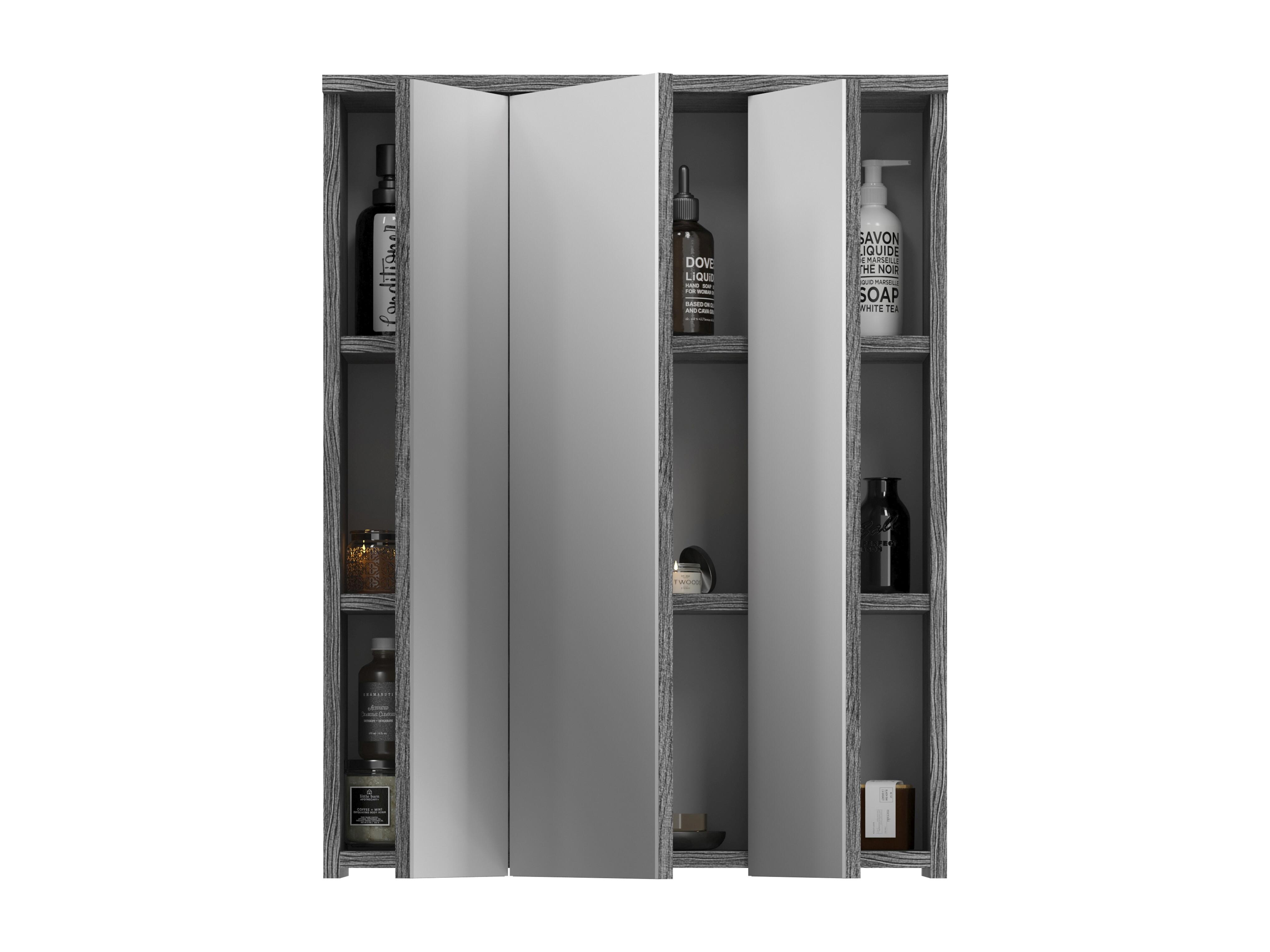 Meuble de rangement haut SCOTT – 3 portes avec miroir – Gris foncé et blanc – 60x79x18 cm