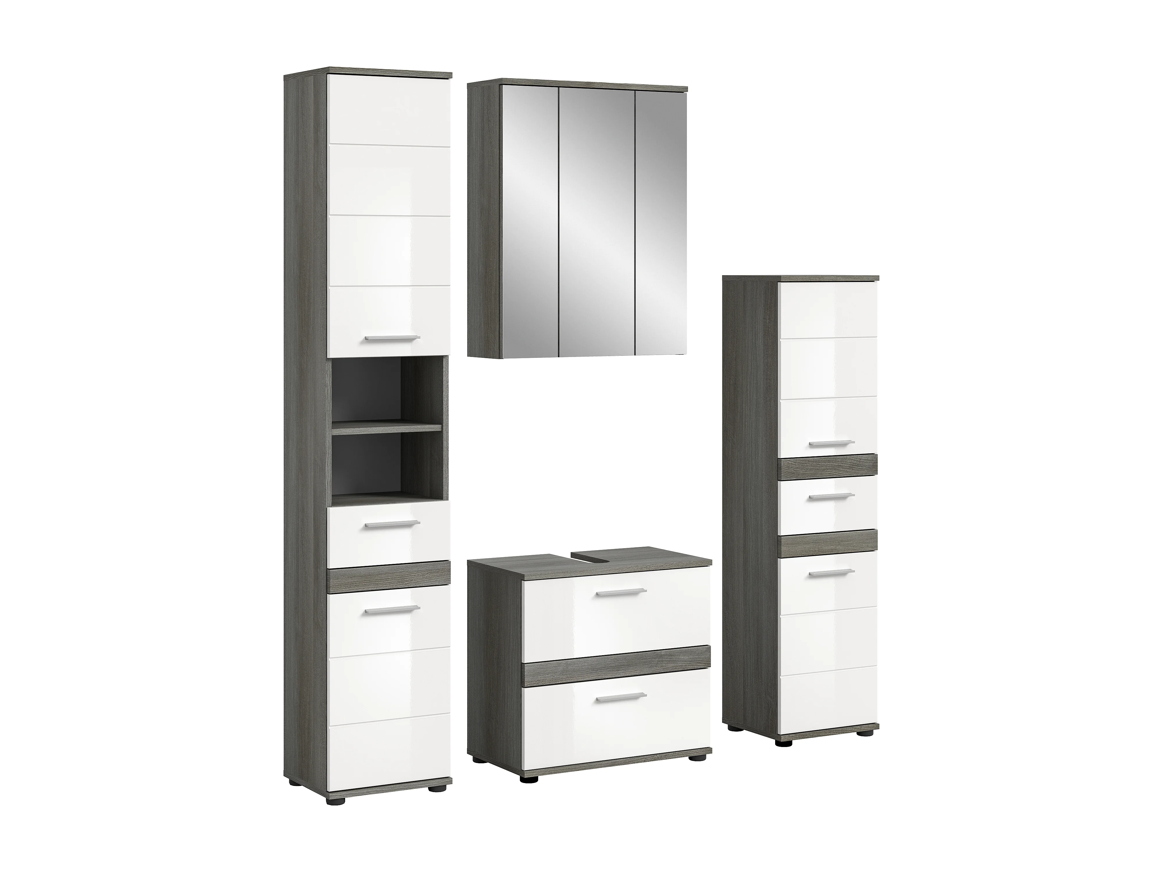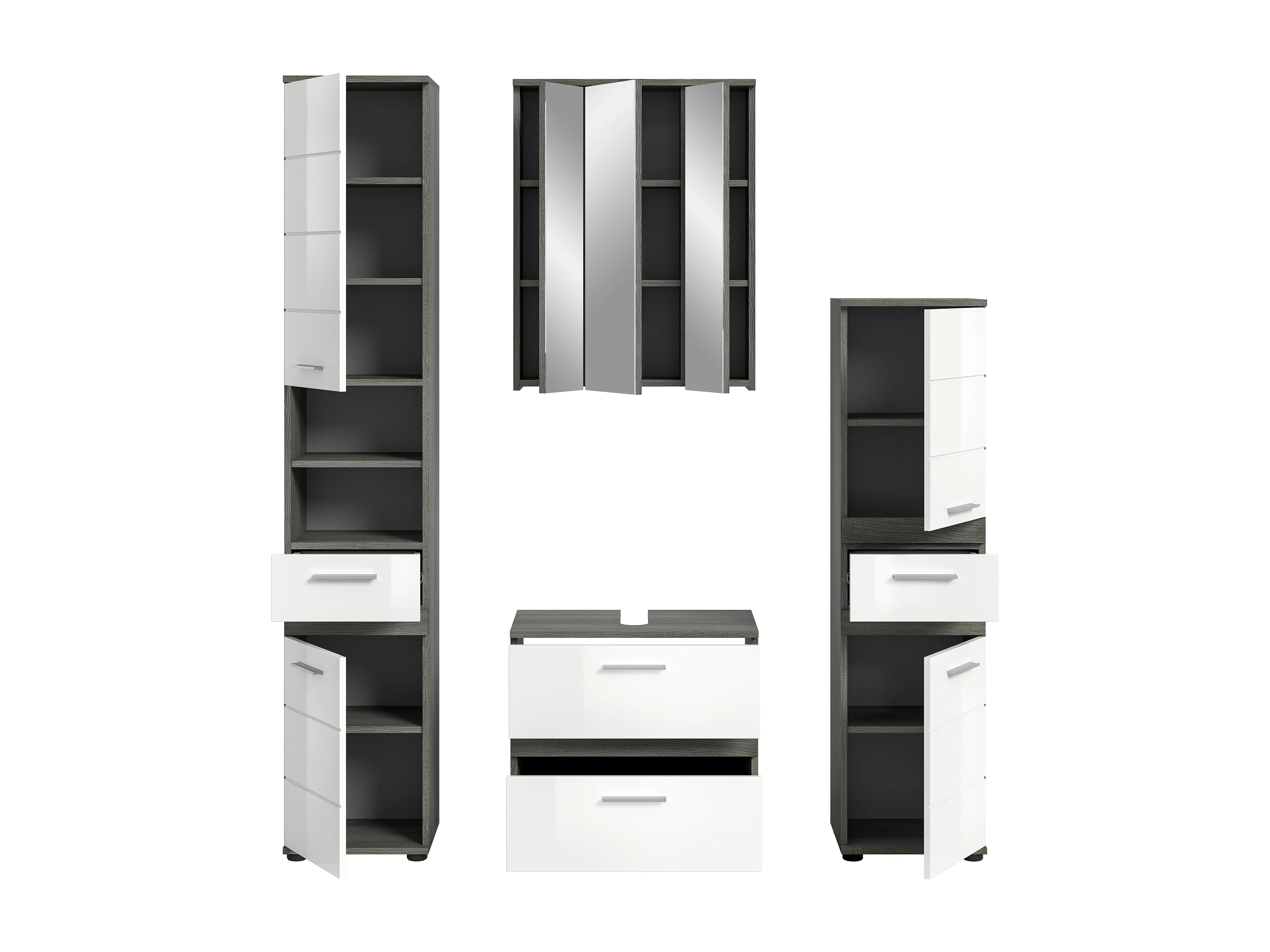 Kaleb - Ensemble de 4 meubles de salle de bains en mélaminé blanc et argenté, vasque non incluse (L/H/P : 160x191x34 cm)