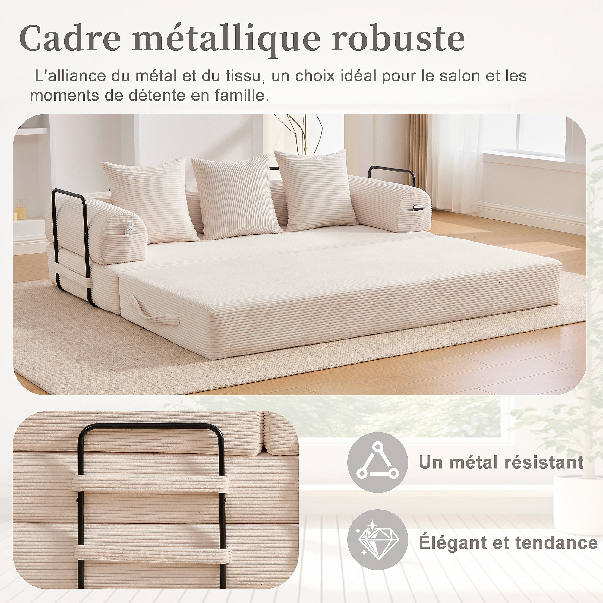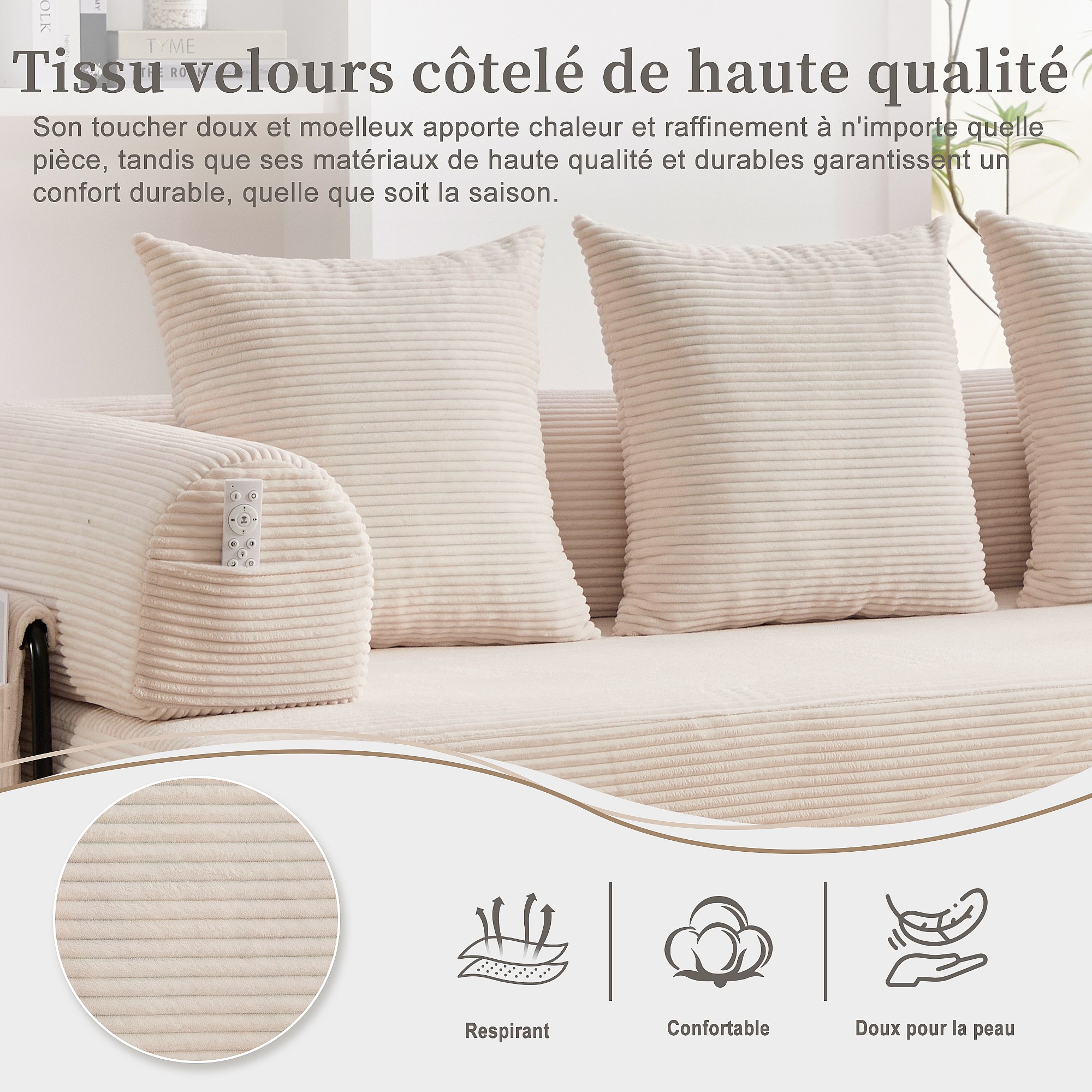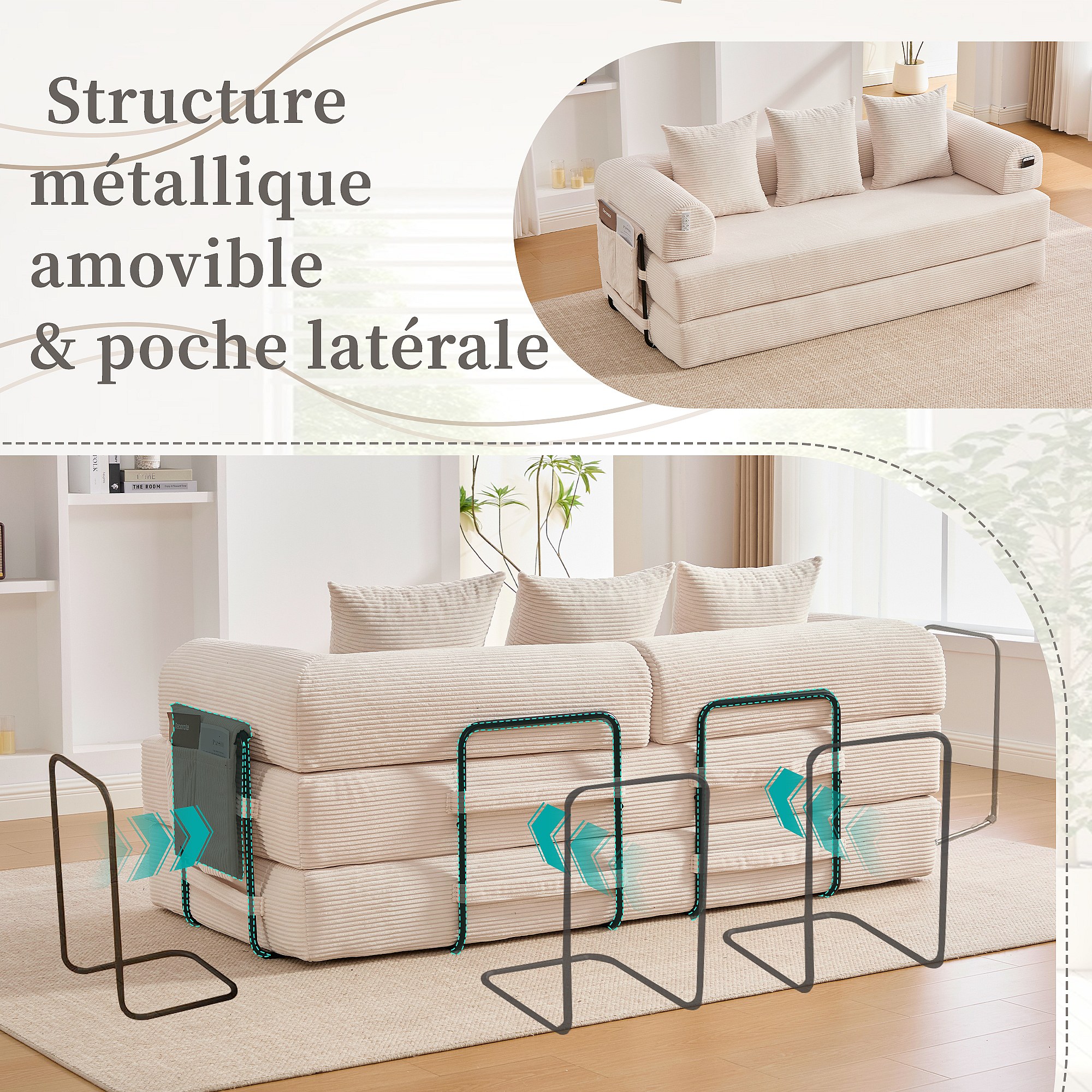 Kaleido 2.0 - Canapé Modulable en Velours Côtelé – Cadre Métallique Externe - Poches de Rangement et 3 Coussins Inclus - Beige – Idéal pour Salon, Appartement