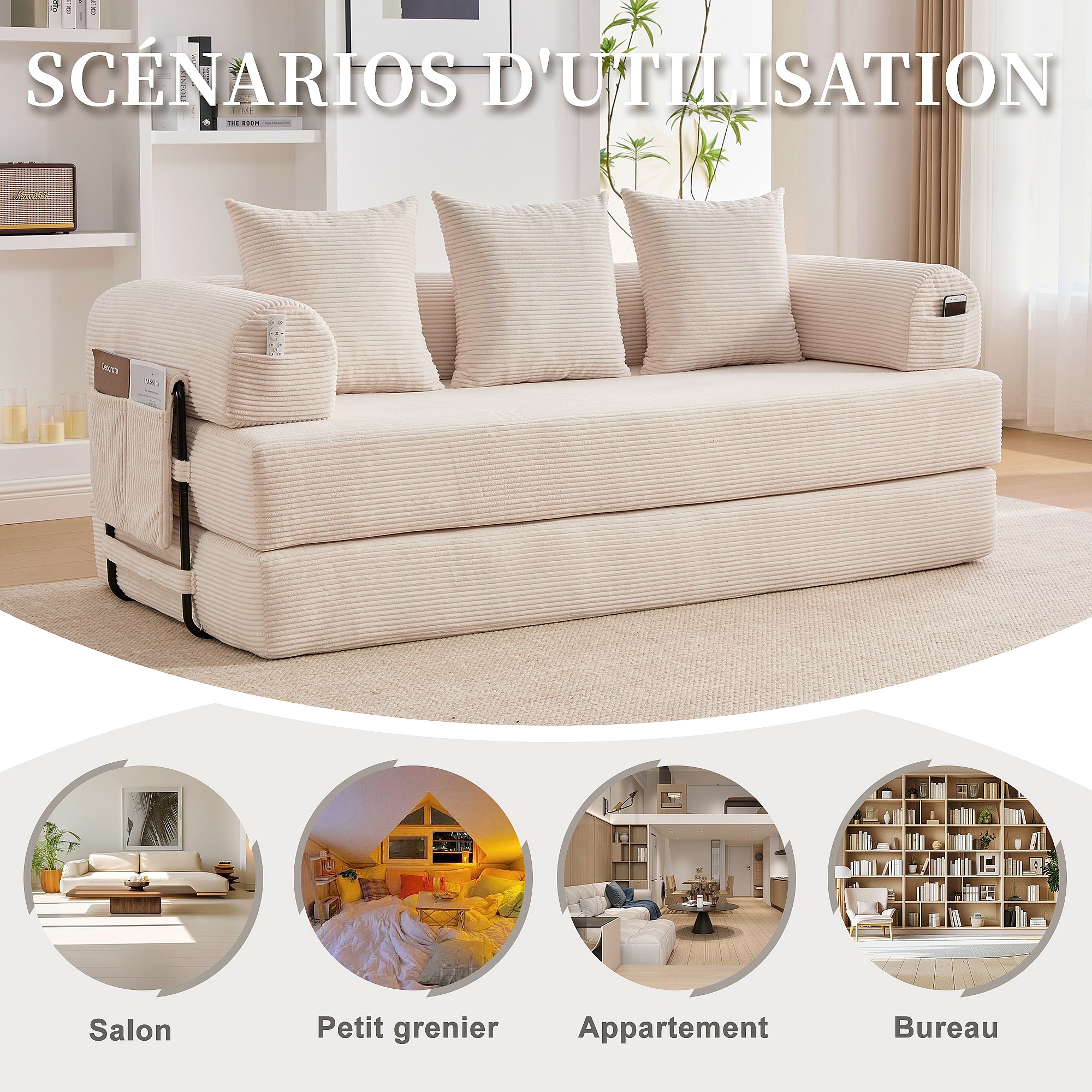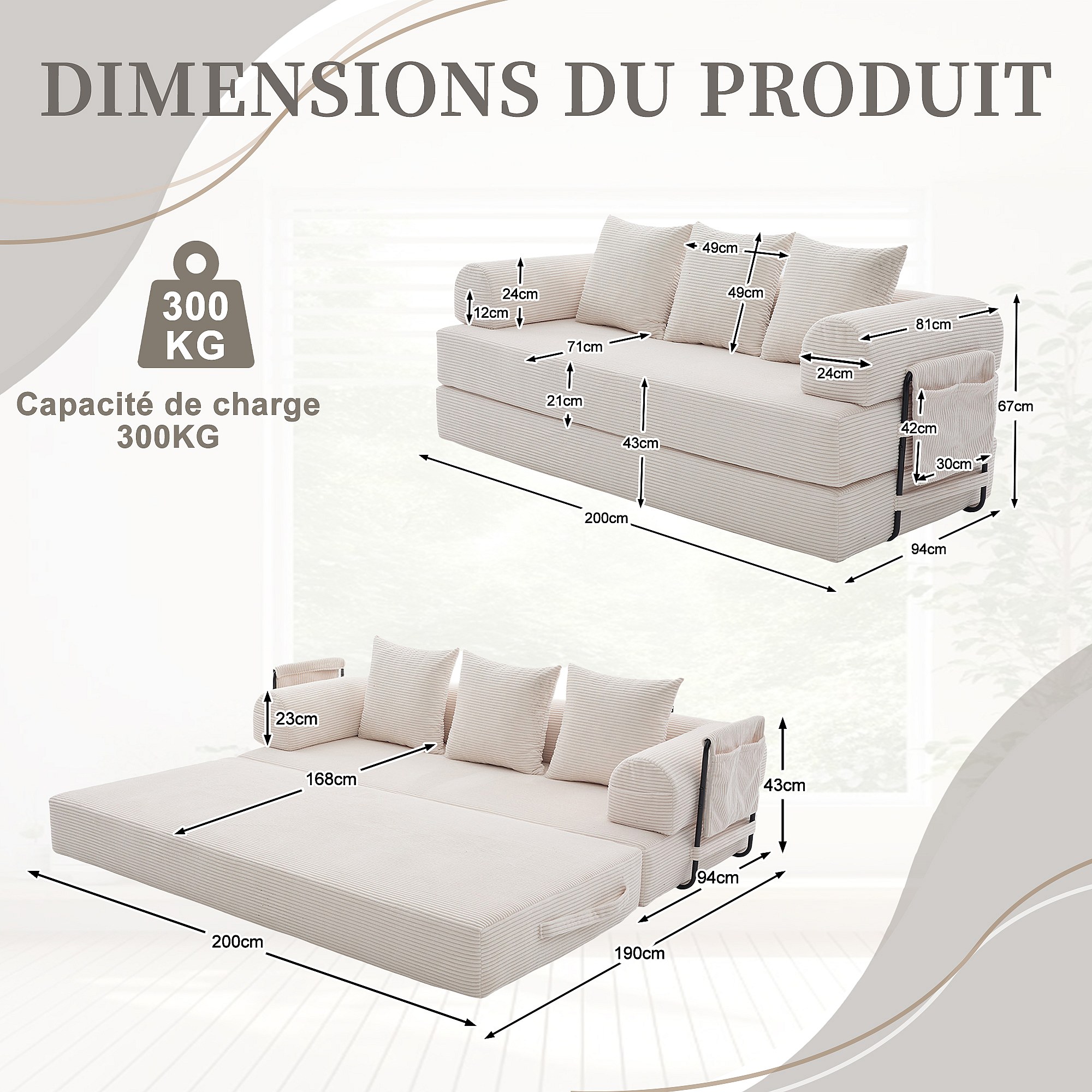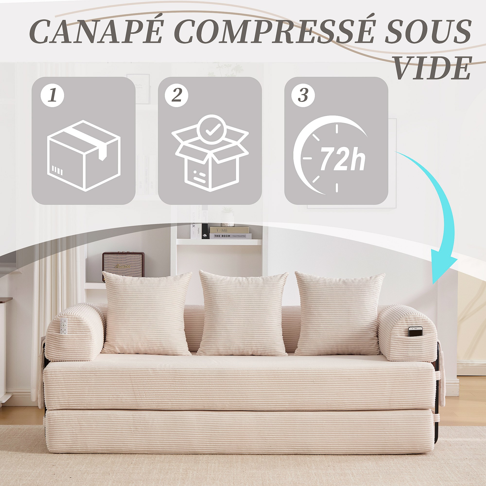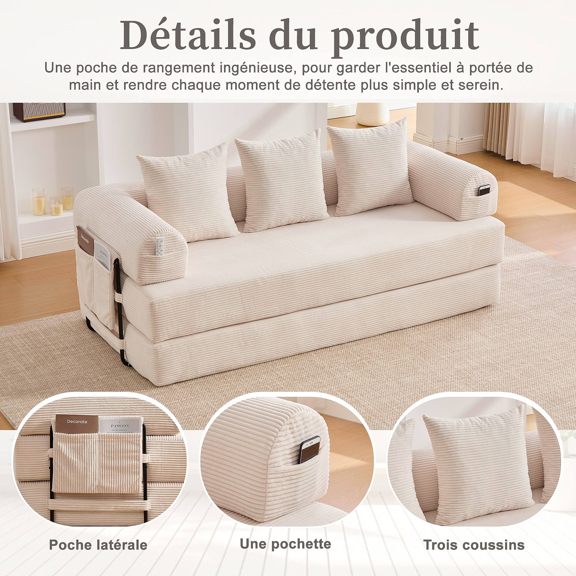 Kaleido 2.0 - Canapé Modulable en Velours Côtelé – Cadre Métallique Externe - Poches de Rangement et 3 Coussins Inclus - Beige – Idéal pour Salon, Appartement