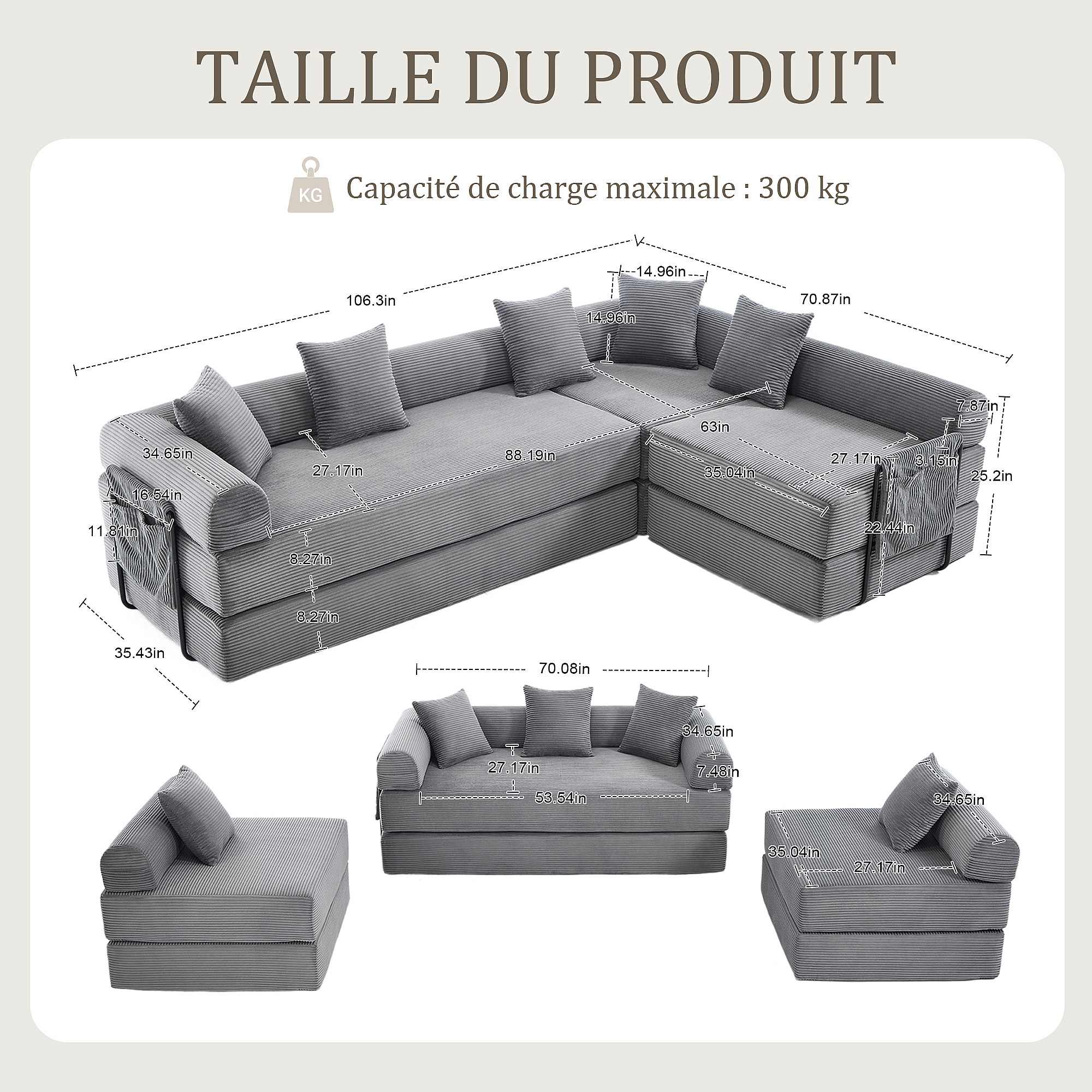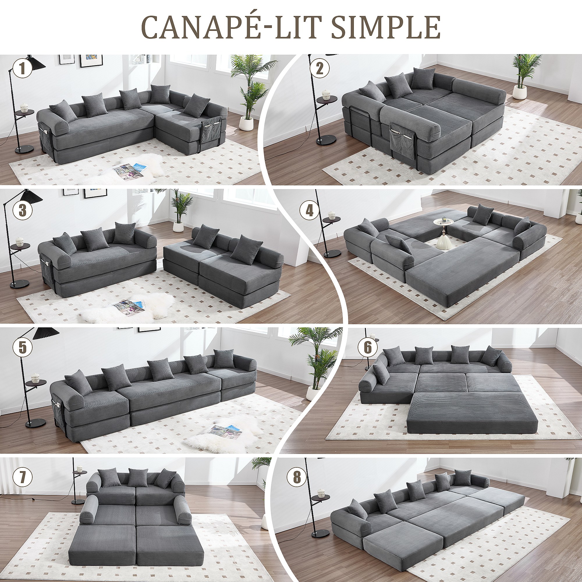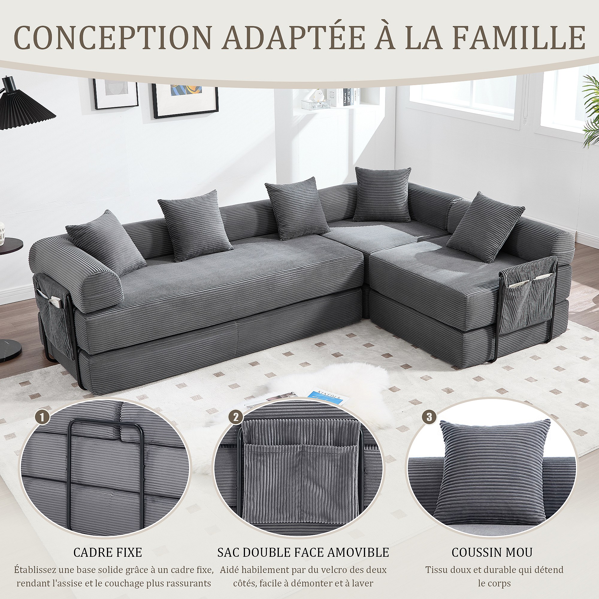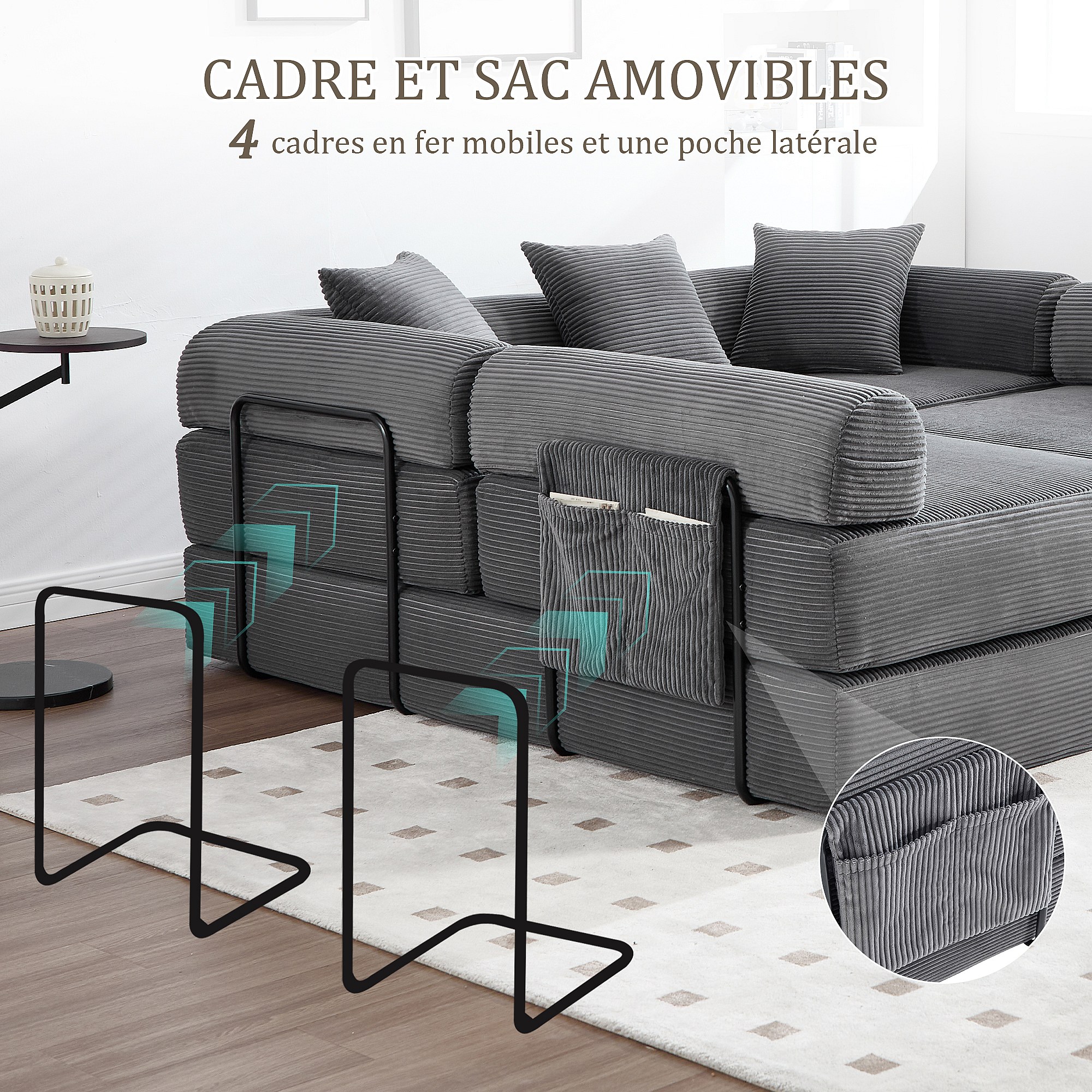 Kaleido 3.0 - Canapé Modulable 5 Places - Canapé Convertible avec Cadre Métal Externe - 5 Coussins Inclus - Combinaisons DIY Illimitées - Idéal Salon, Bureau