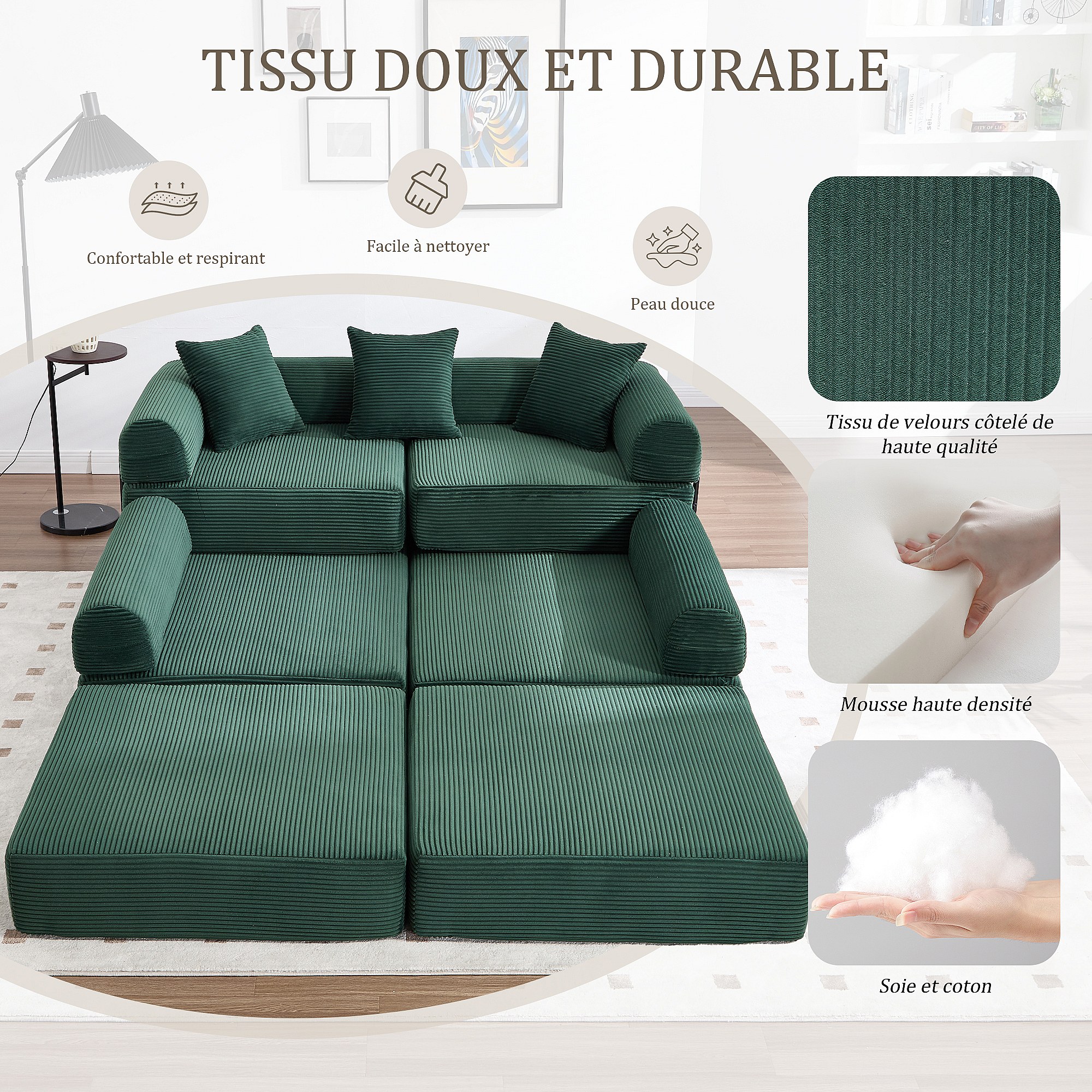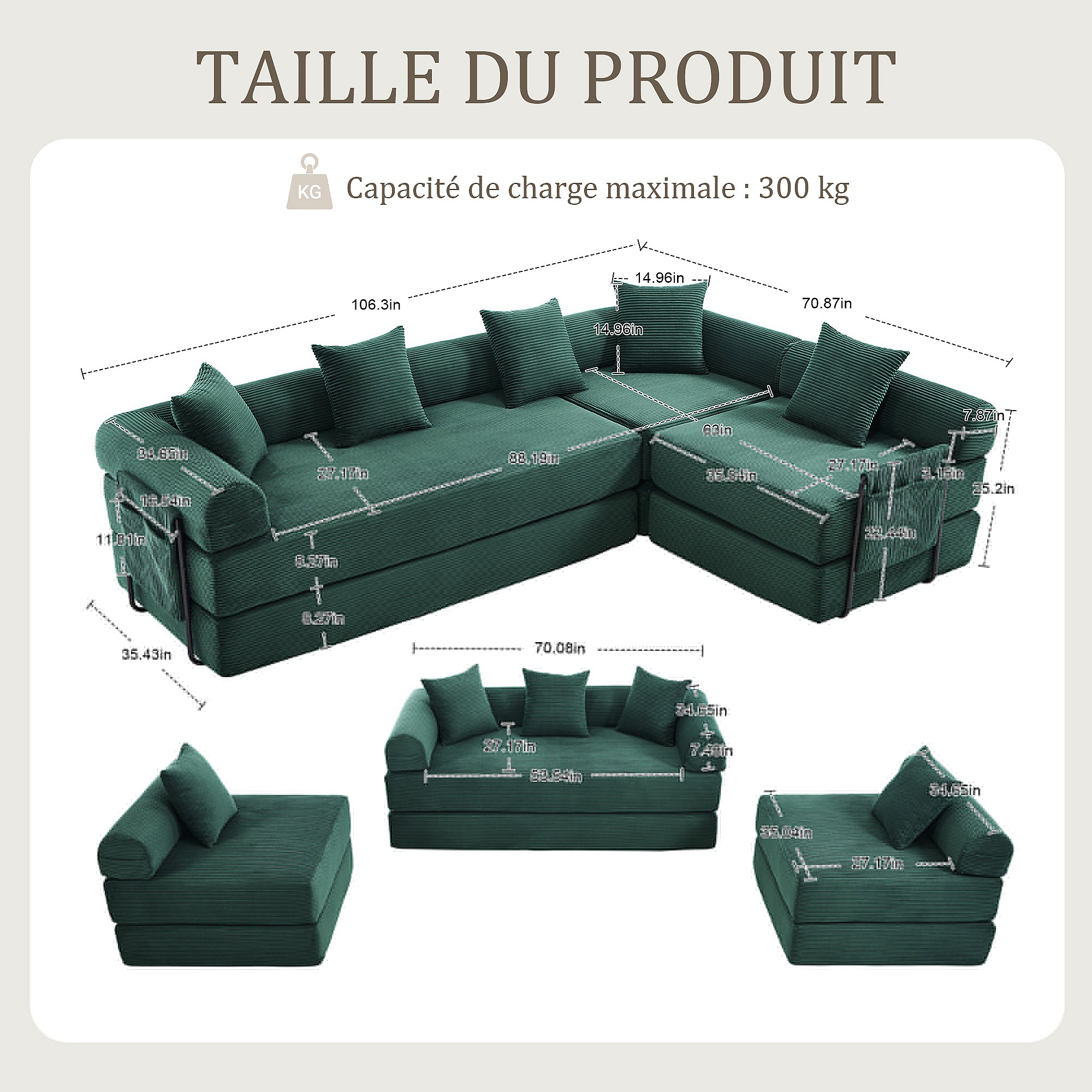 Kaleido 3.0 - Canapé Modulable 5 Places - Canapé Convertible avec Cadre Métal Externe - 5 Coussins Inclus - Combinaisons DIY Illimitées - Idéal Salon, Bureau