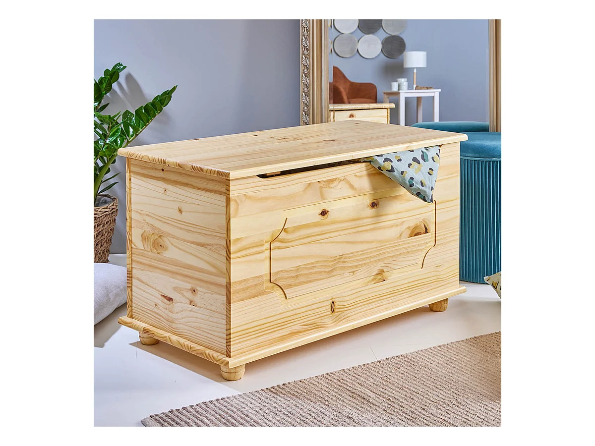 Coffre à jouets HANNAH coffre de rangement malle rectangulaire avec abattant, en pin massif recouvert d'un vernis naturel
