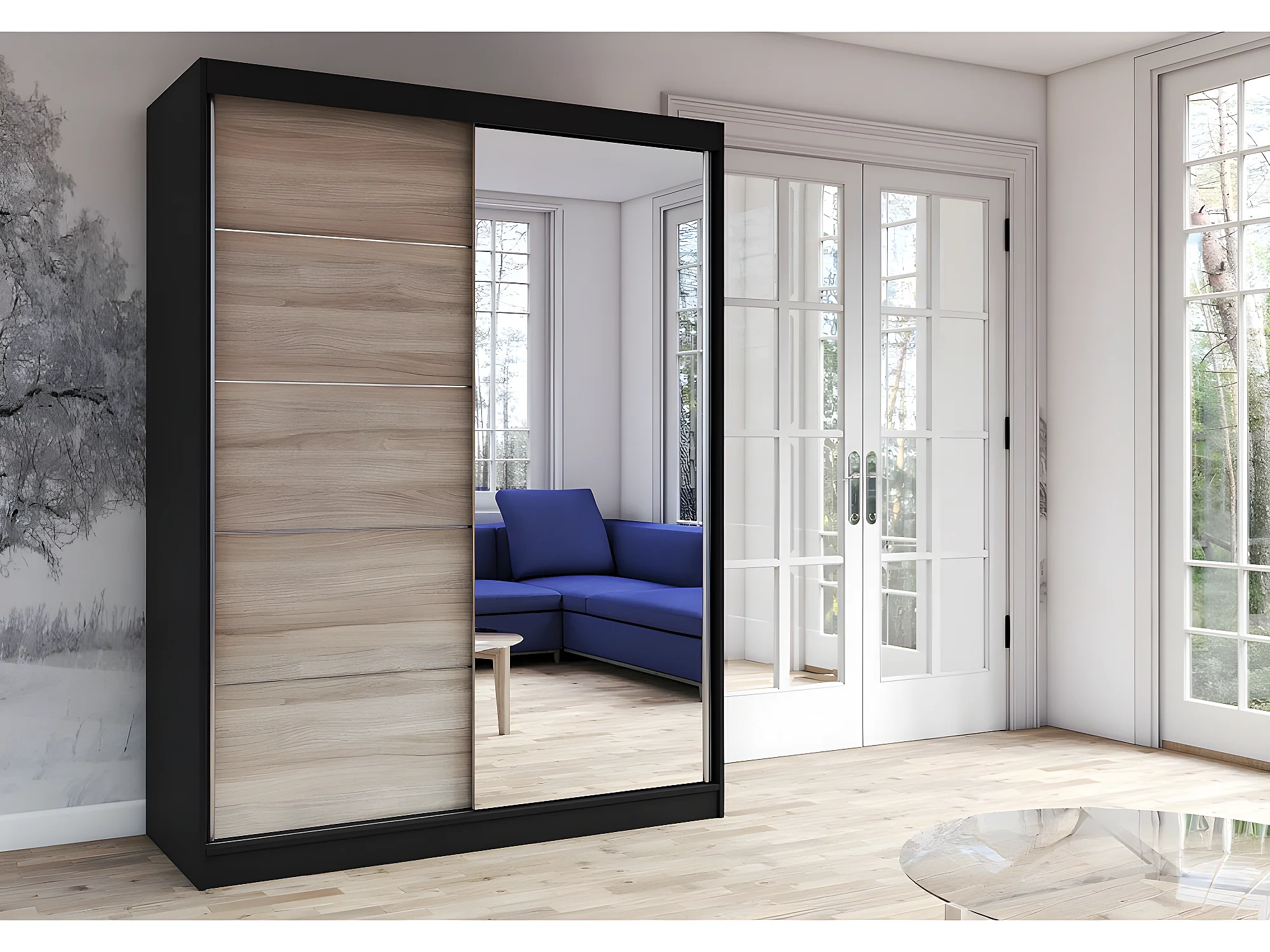 KALKE - Grande armoire à portes coulissantes - Miroir - 5 étagères + tringle - 150x61x200 cm
