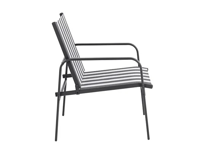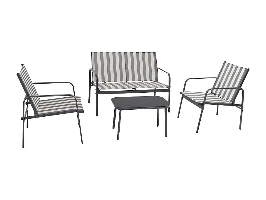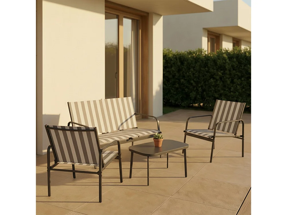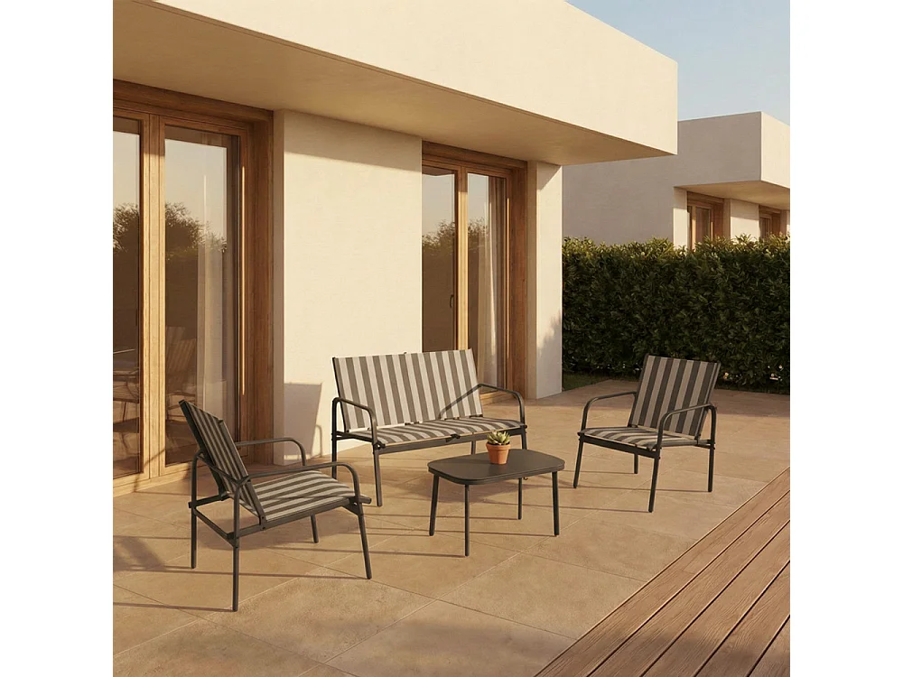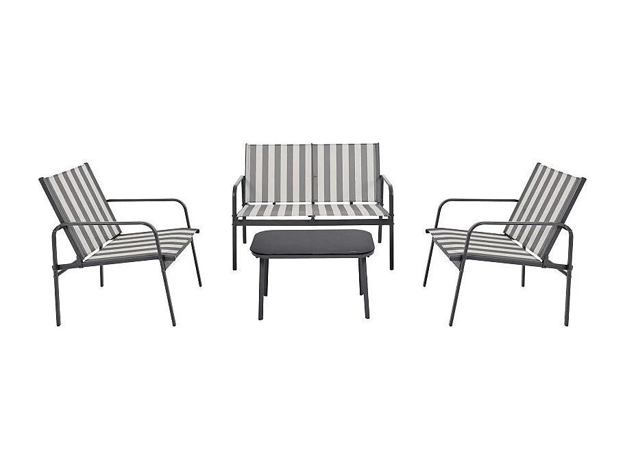 Kallia - Salon de jardin 4 personnes à rayures en acier et textilène - Gris foncé