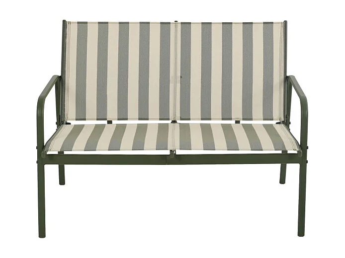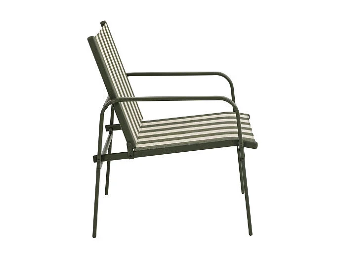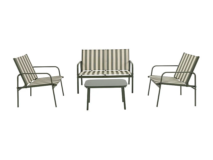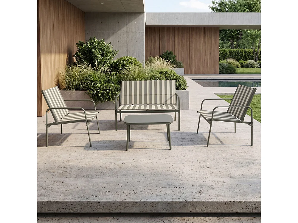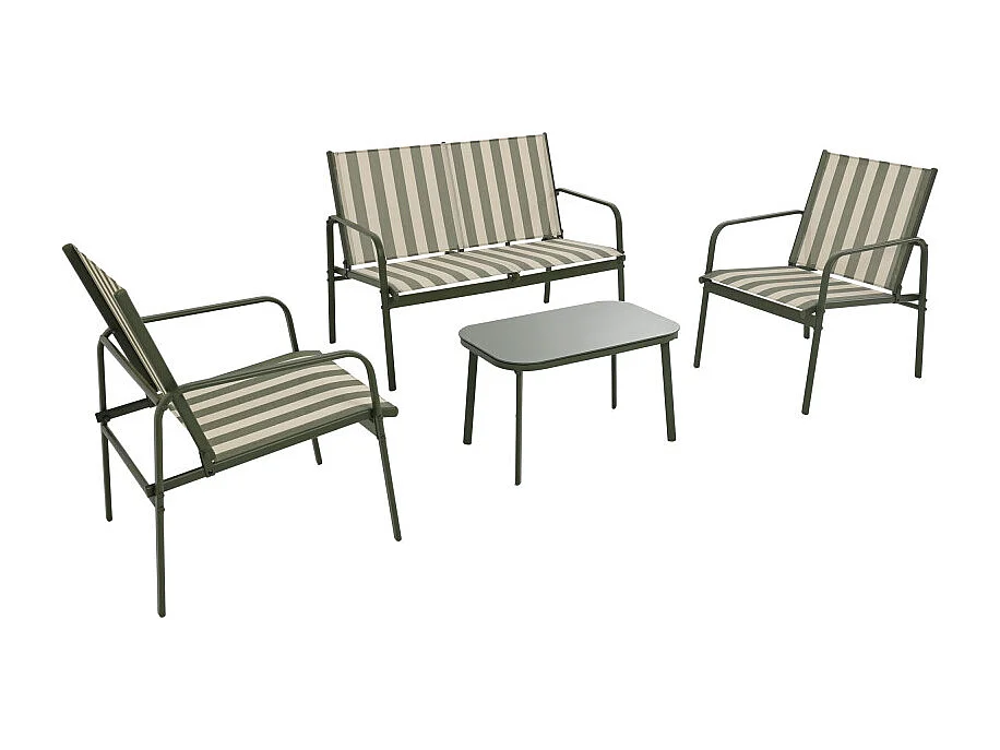 Kallia - Salon de jardin 4 personnes à rayures en acier et textilène - Vert olive