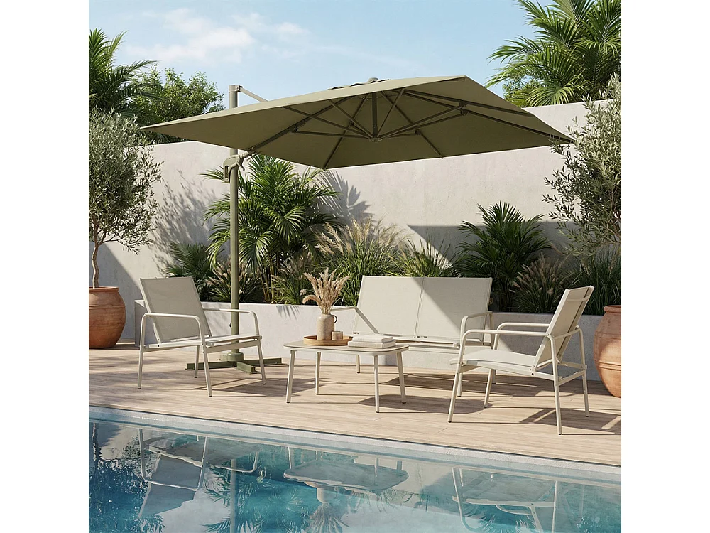 Kallia - Salon de jardin 4 places en acier traité et textilène - Beige