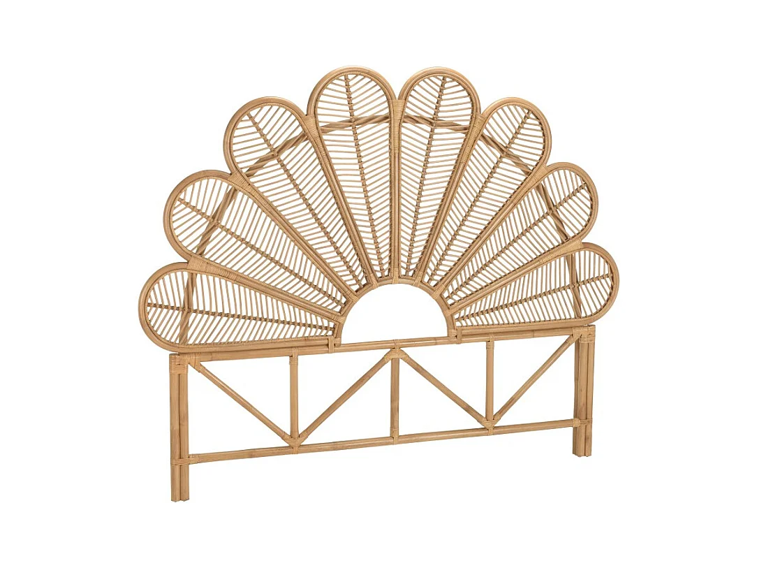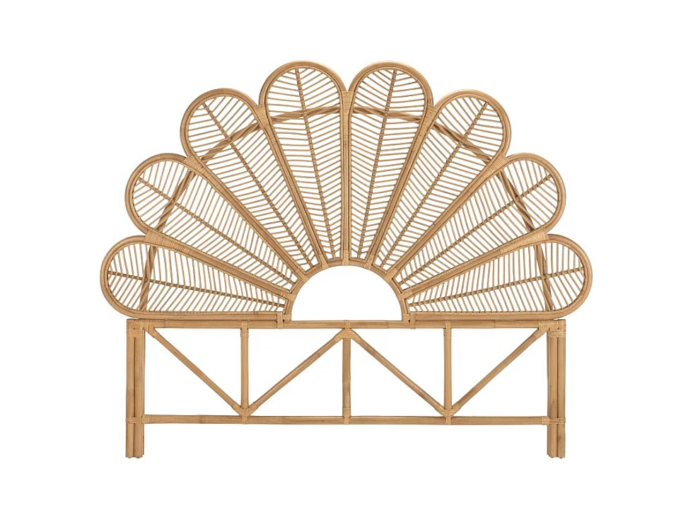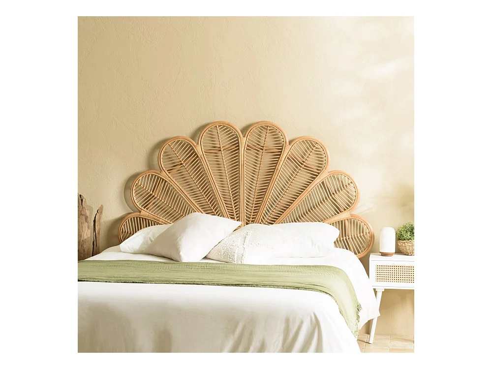 KALLY - Tête de lit demi-lune 140/160cm 'fleur' rotin couleur beige