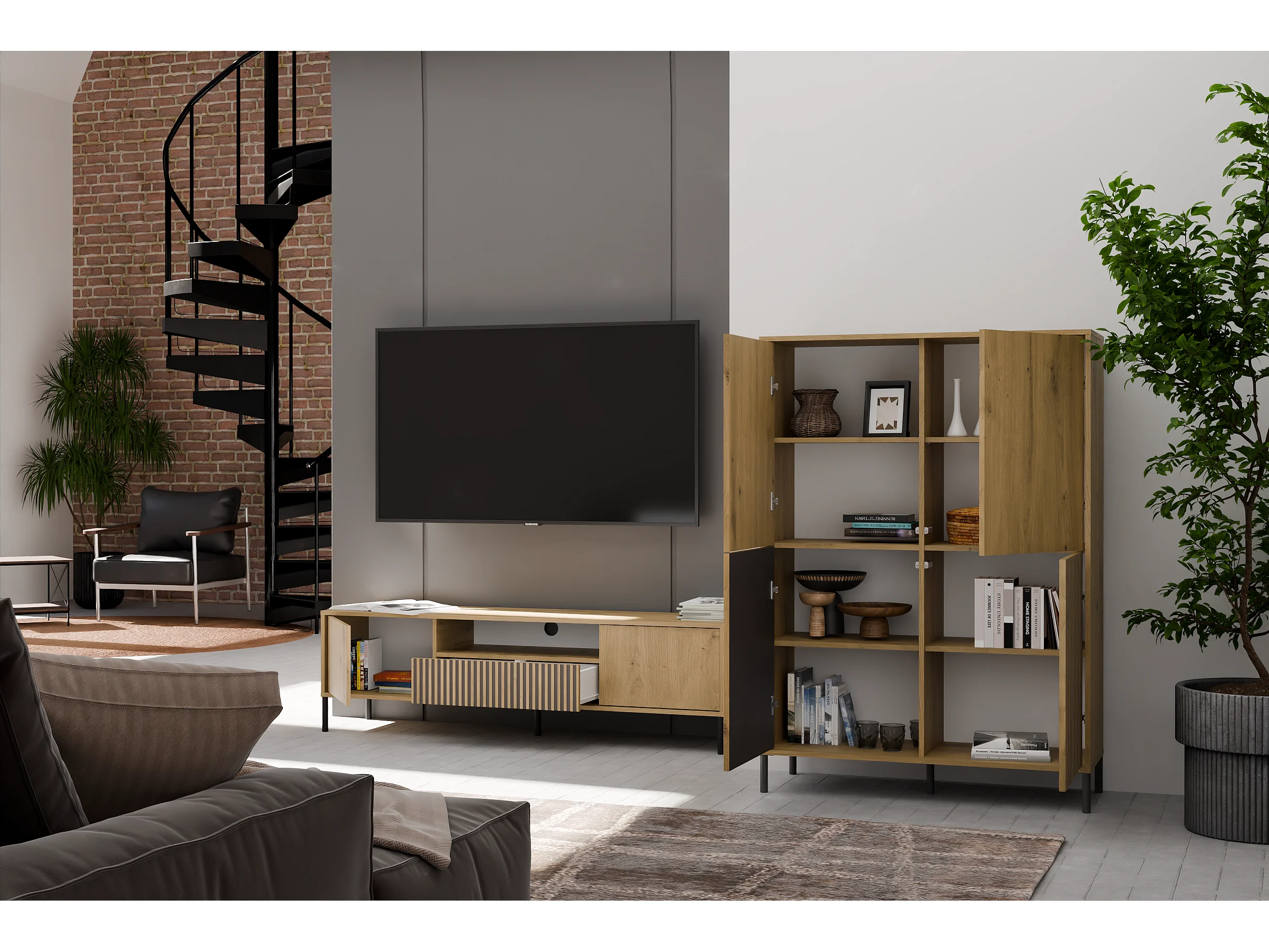 KAMARO - Armoire moderne 8 étagères et 4 portes - 147.5x103.5x40cm - Meuble de rangement - Chêne artisan