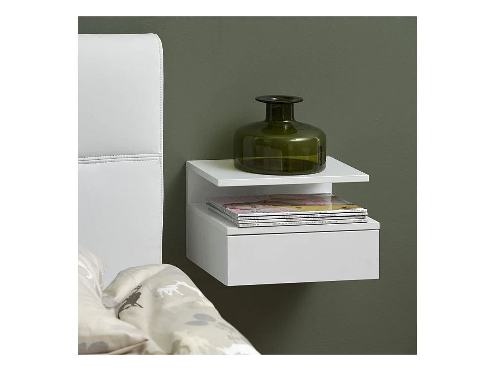 Kamichi - Table de chevet murale 1 tiroir en bois - Blanc