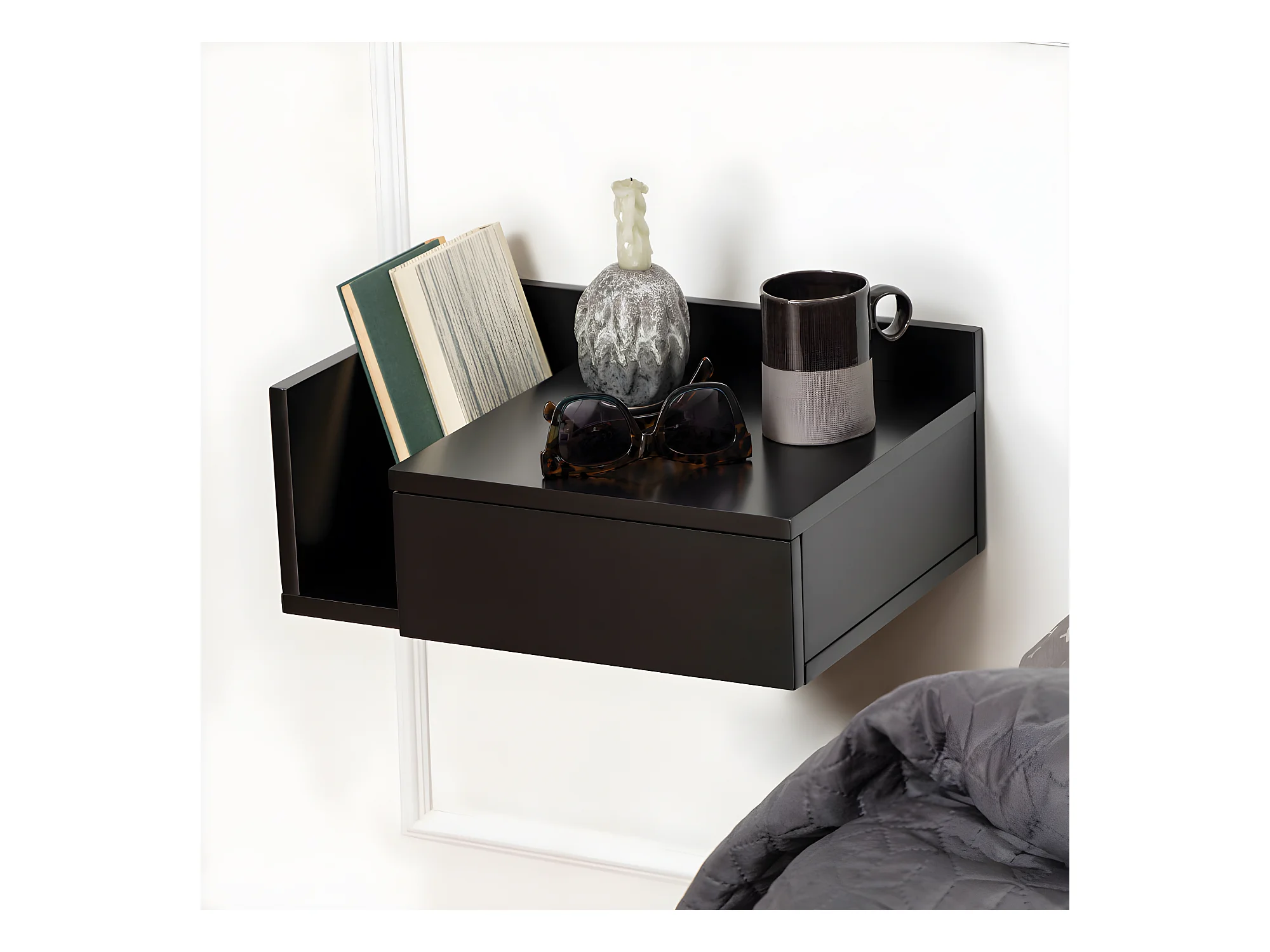 Kamichi - Table de chevet murale réversible en bois - Noir
