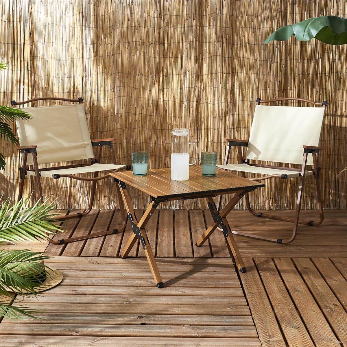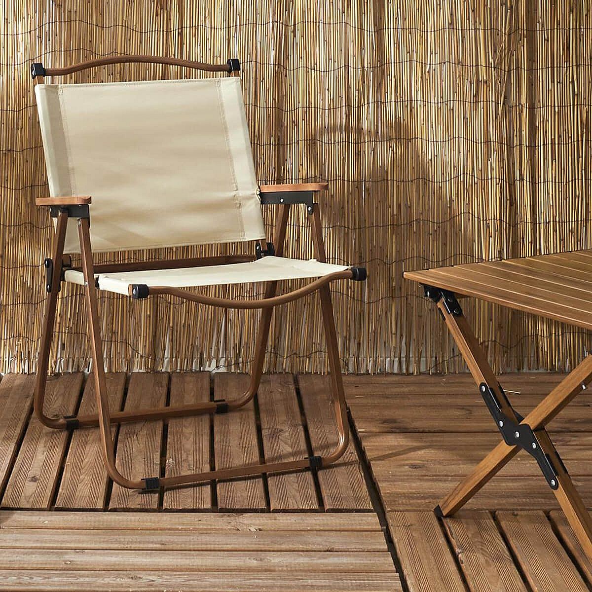 KAMPA - Chaise Pliante de Camping en Métal imitation bois et Toile Beige