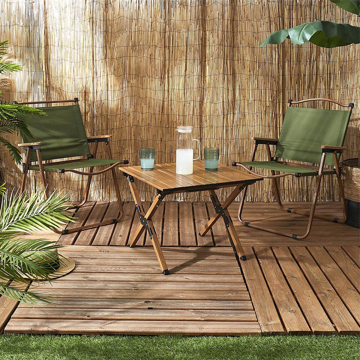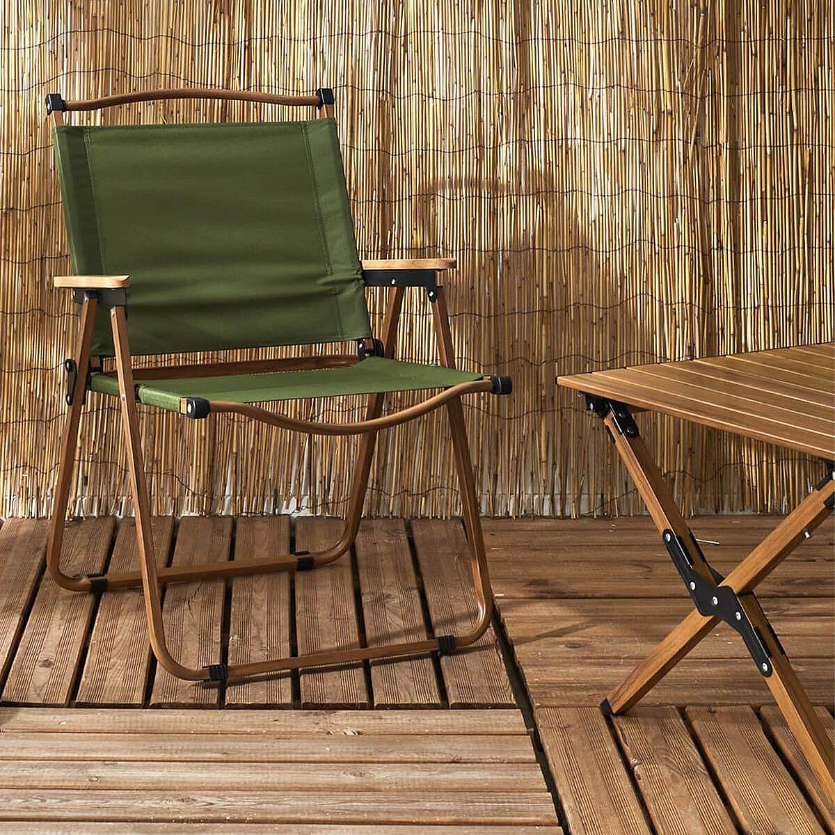 KAMPA - Chaise Pliante de Camping en Métal imitation bois et Toile Verte