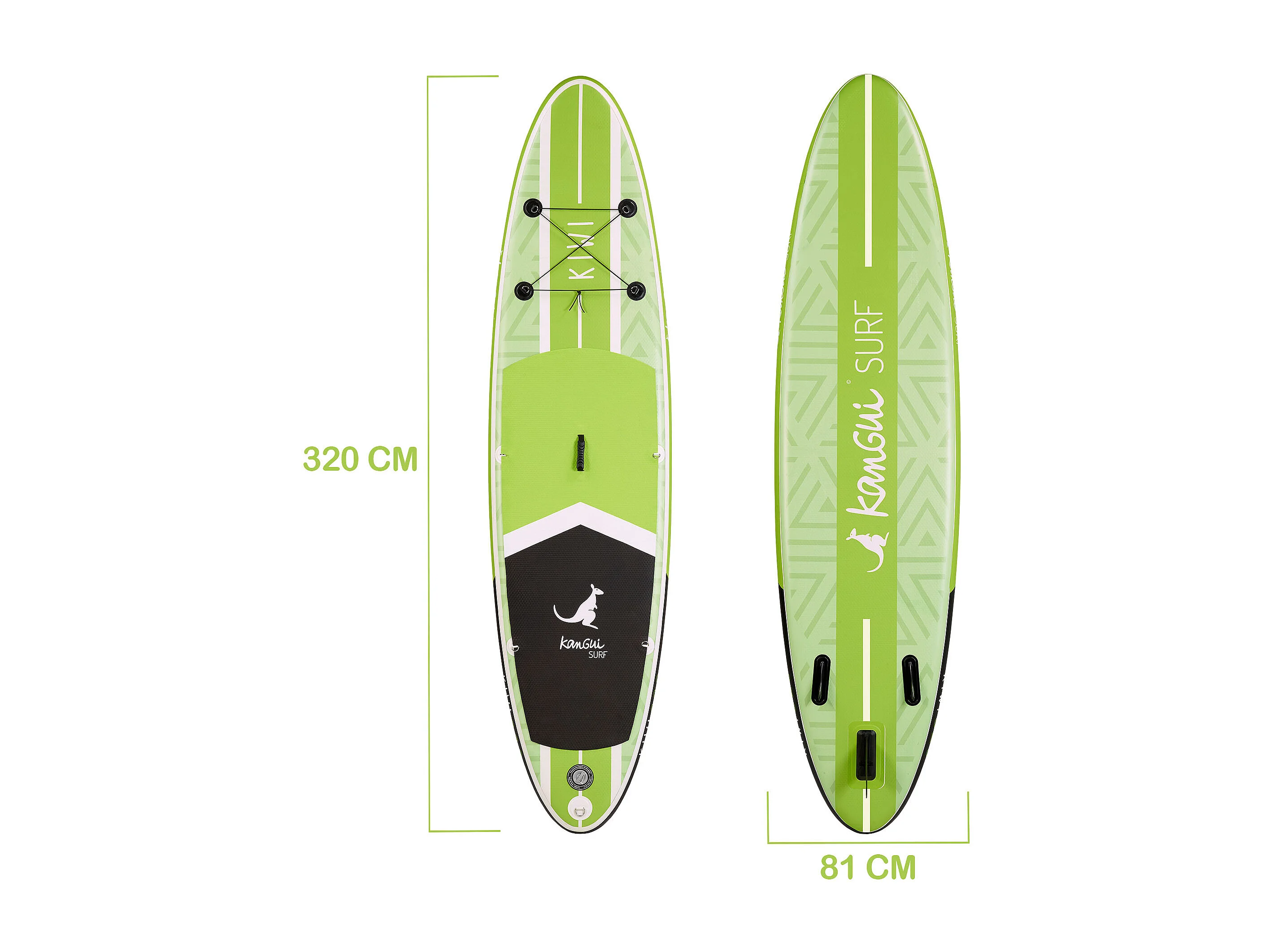 Kangui - Stand up Paddle 320cm SUP gonflable + pagaie + sac à dos + pompe haute pression + leash + kit de réparation- KIWI