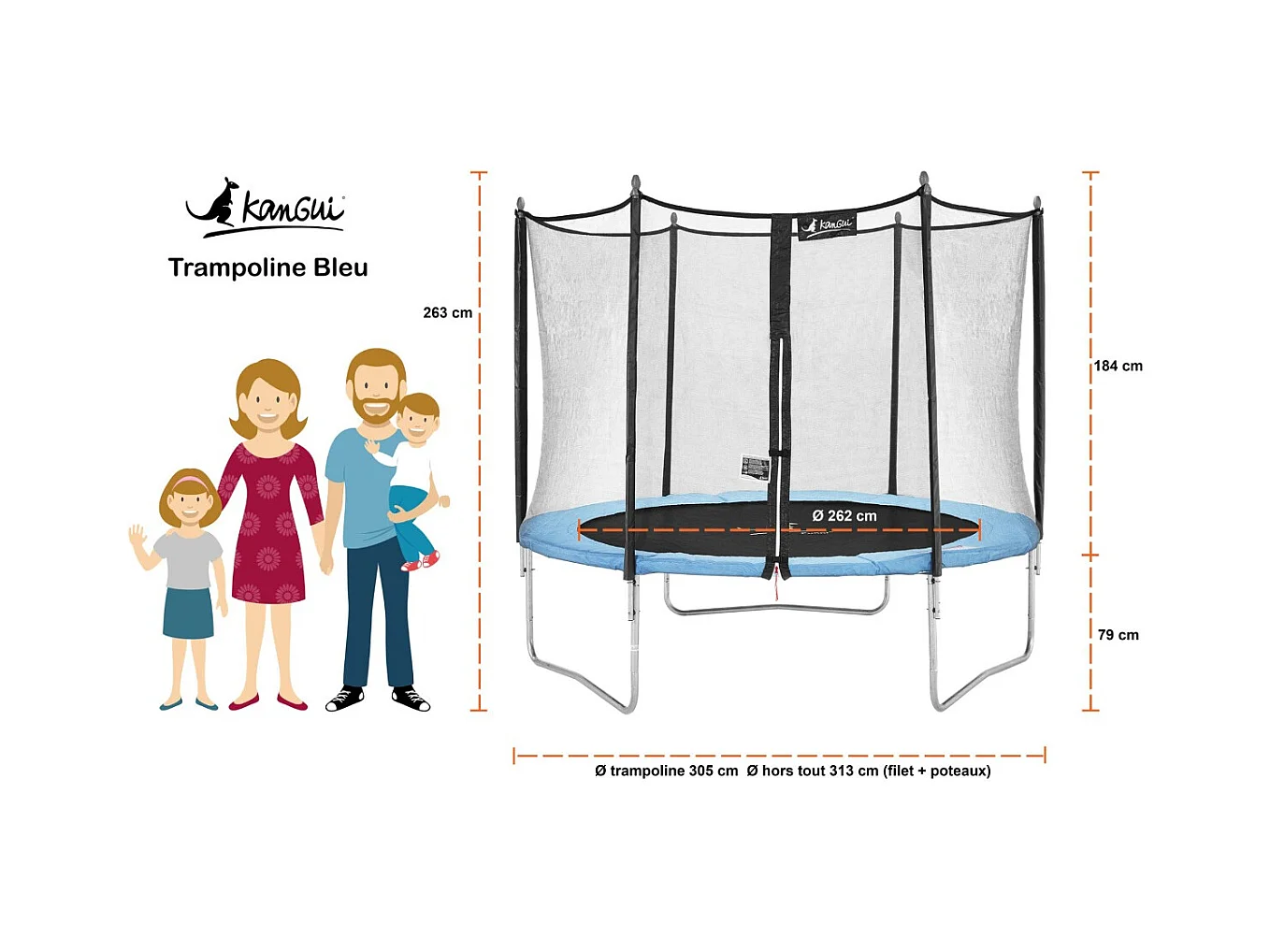 Kangui - Trampoline de jardin 305 cm+ filet de sécurité+ échelle+ bâche+ kit d'ancrage | Normes EU | Montage facile