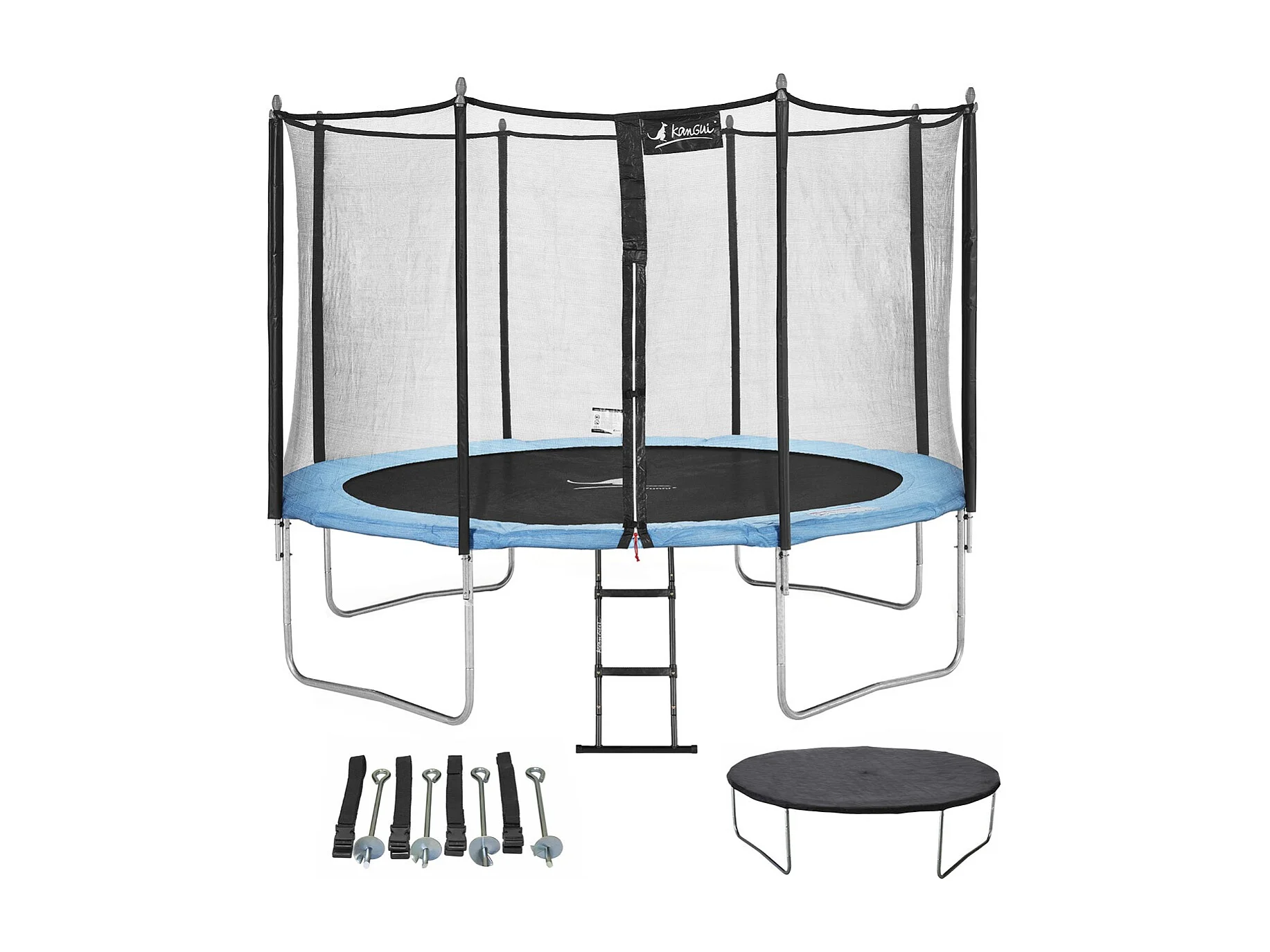 Kangui - Trampoline de jardin 366 cm + filet de sécurité + échelle + bâche de protection + kit d'ancrage | Normes EU | Montage facile