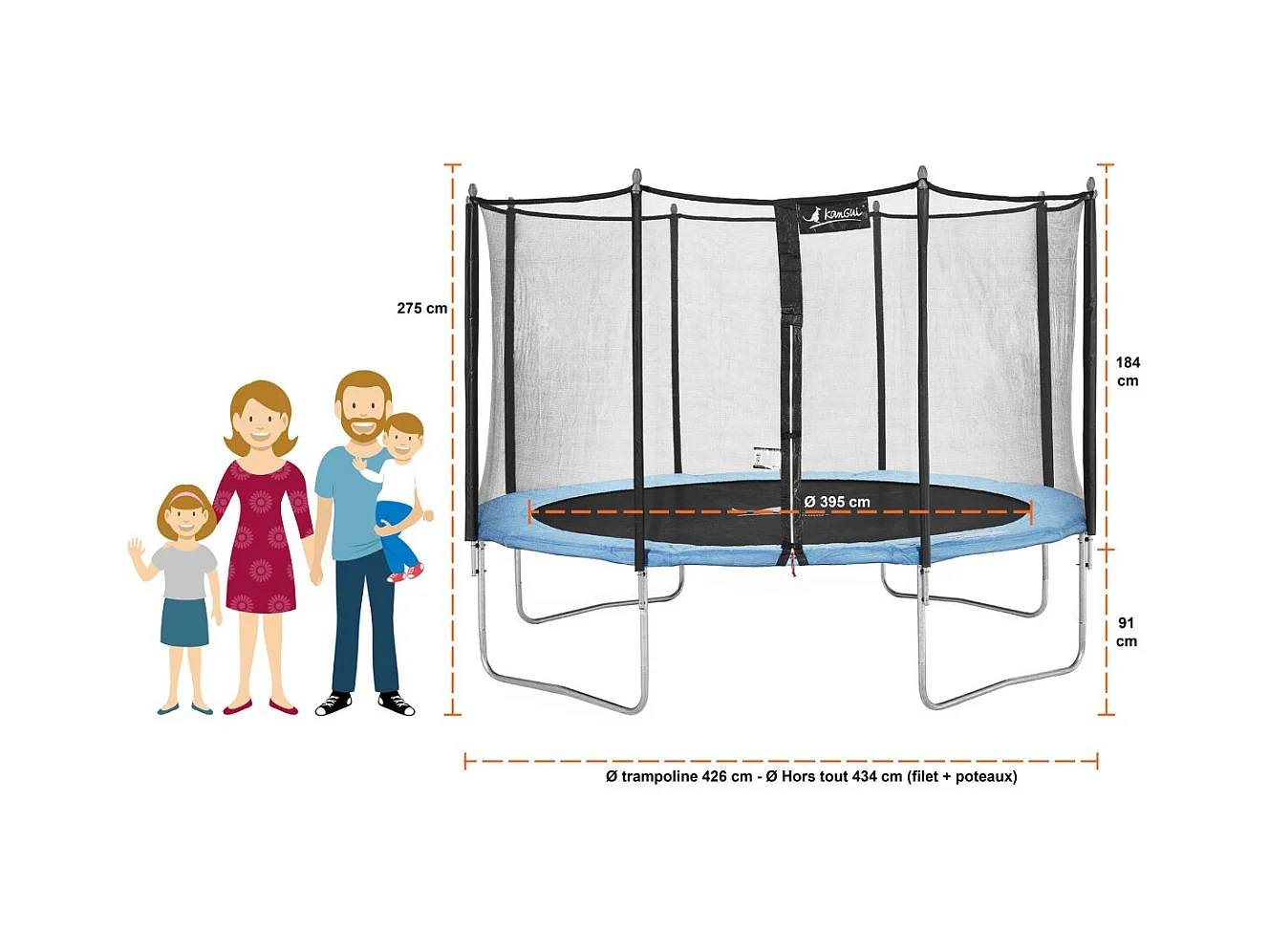 Kangui - Trampoline de jardin 426 cm + filet de sécurité + échelle | Normes EU | Montage facile