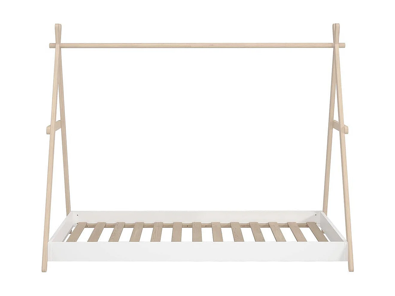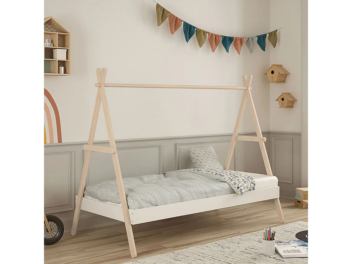 KANOA - Lit Tipi 90x200cm Hauteur Réglable en MDF et Pin Coloris Blanc
