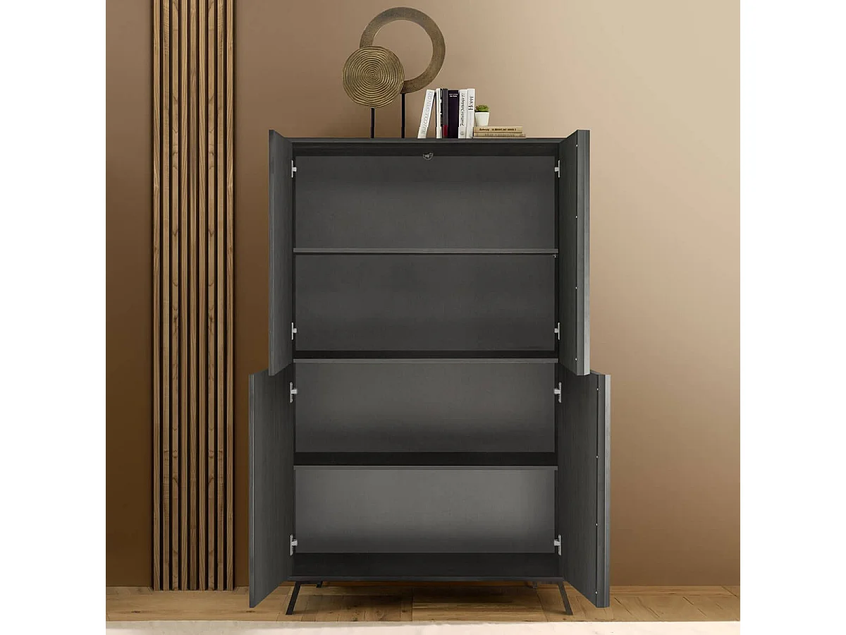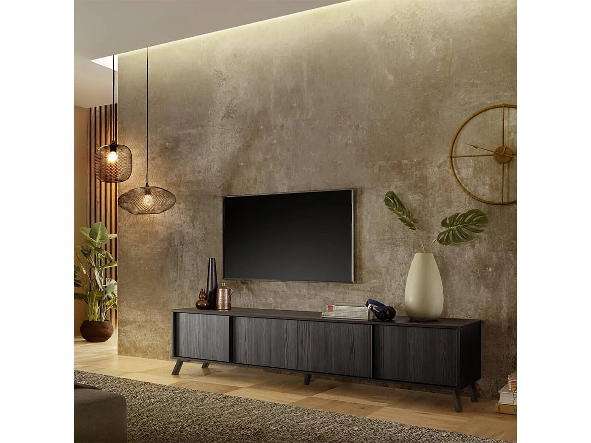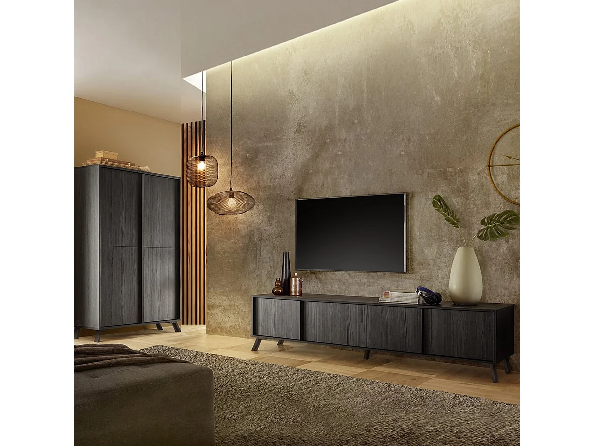KANSAS BLACK - Ensemble salon aspect chêne noir pieds métal noir