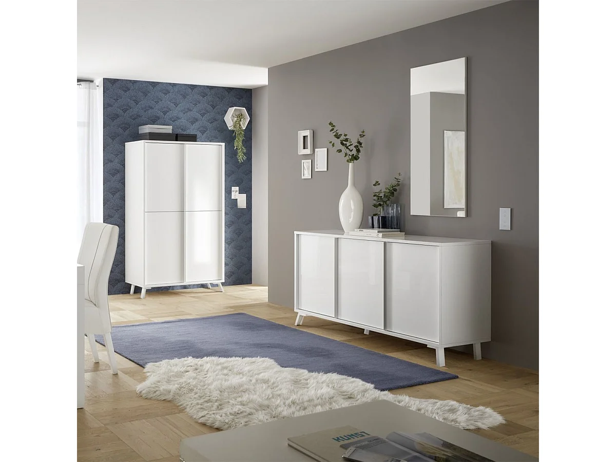 KANSAS WHITE - Ensemble séjour aspect chêne noir pieds métal noir