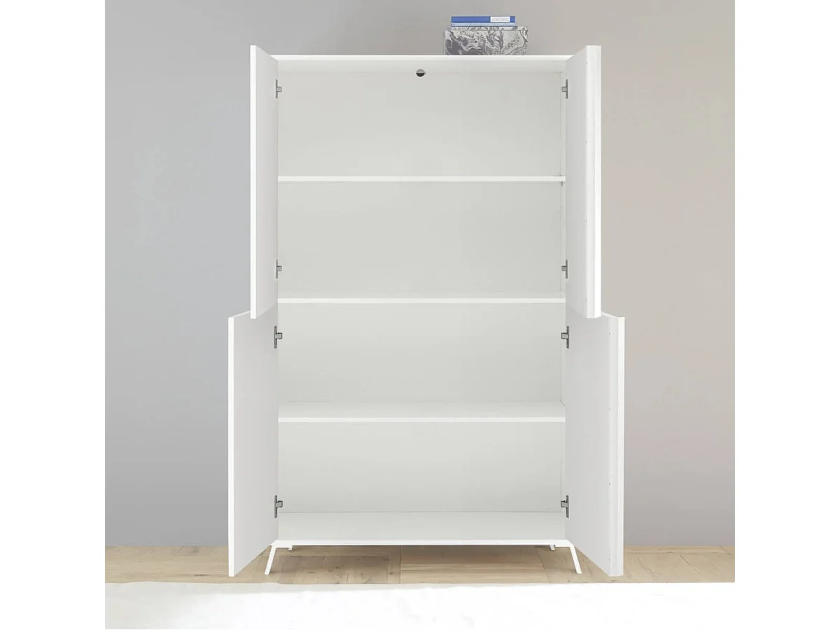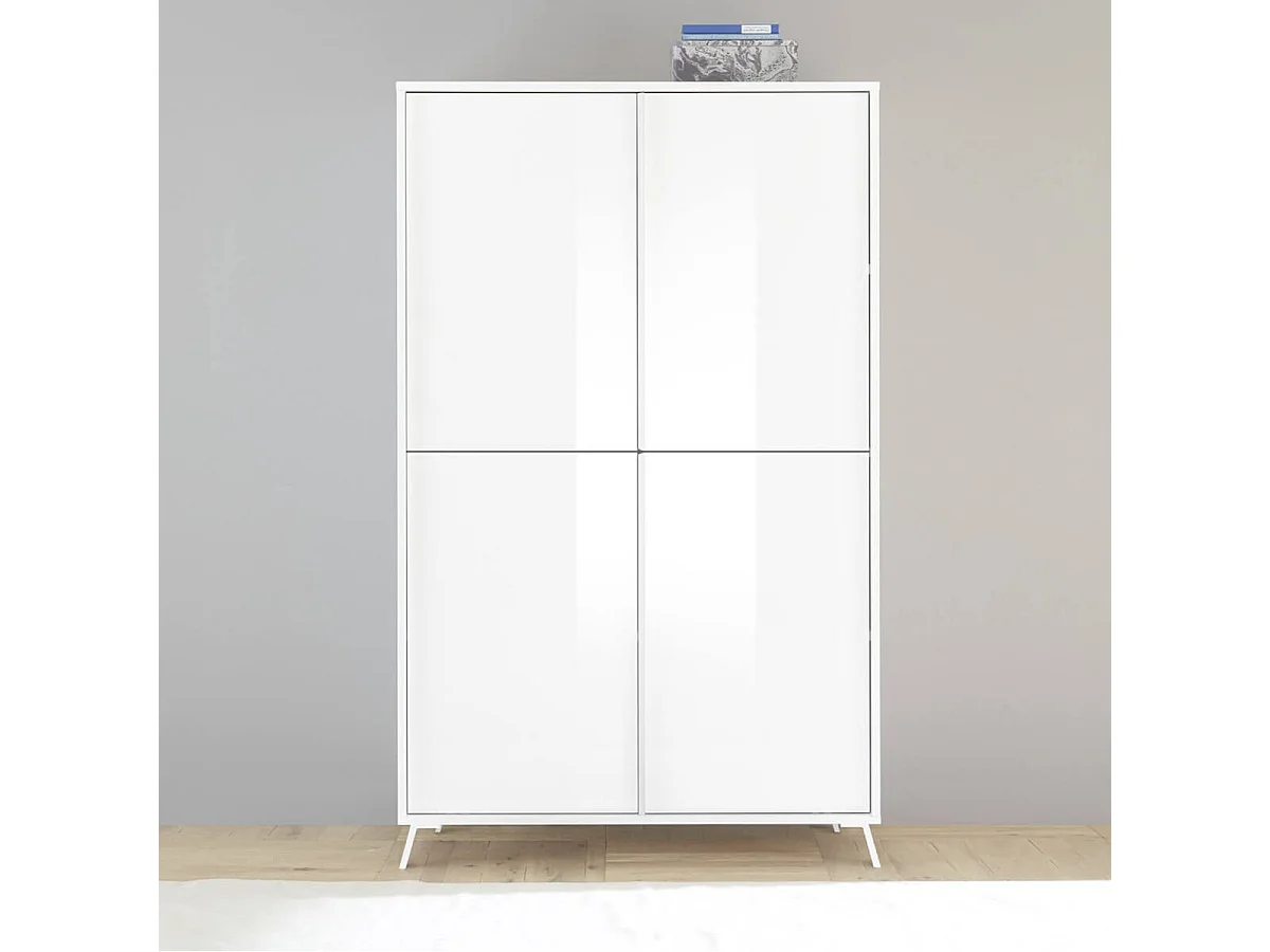 KANSAS WHITE - Rangement 4 portes laqué blanc pieds métal