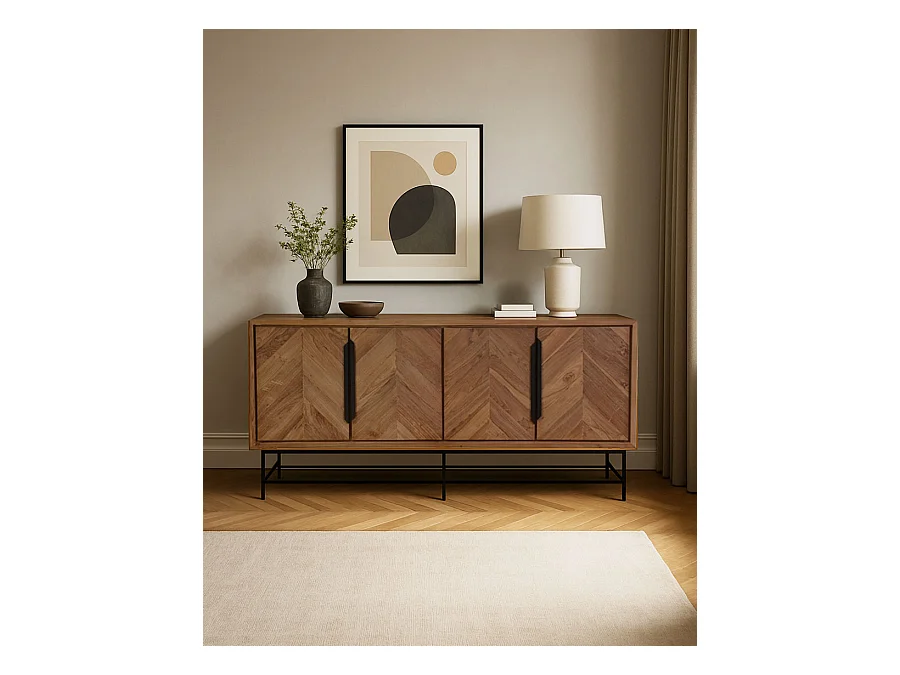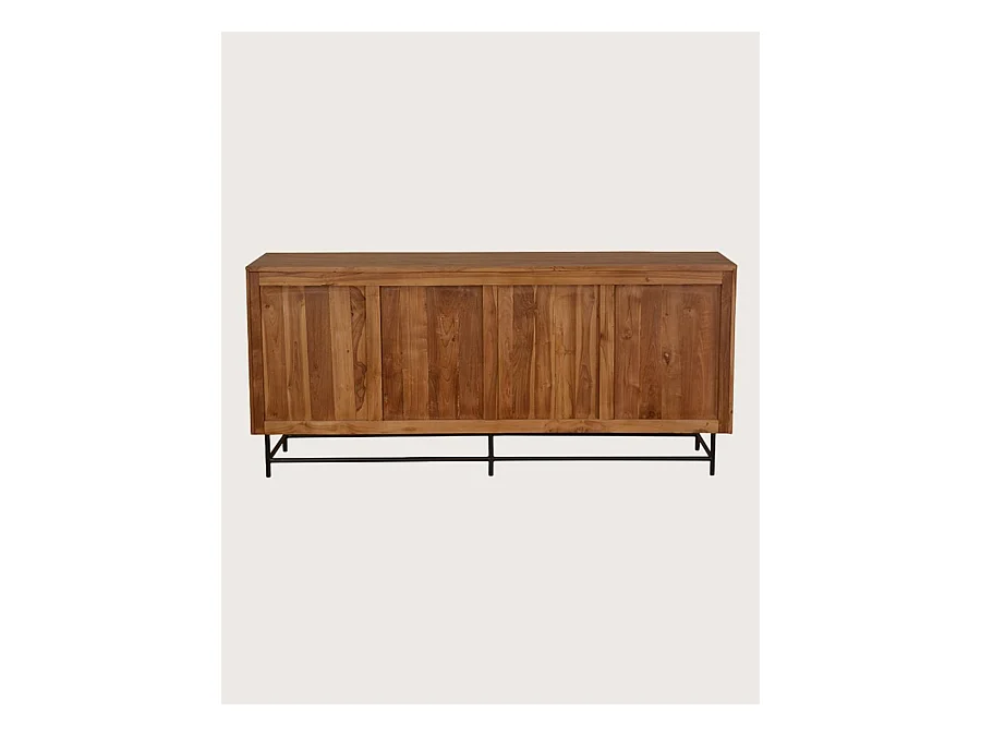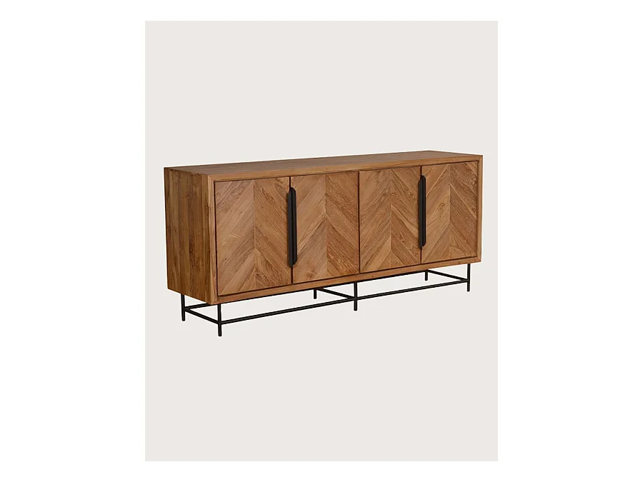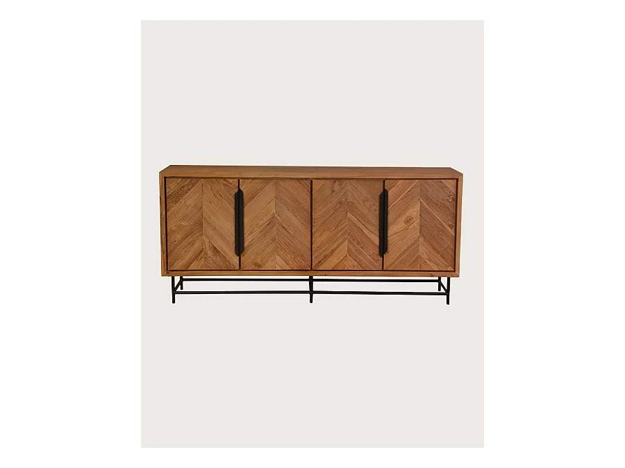 Kappa - Grand Buffet bas en teck recyclé avec motif chevron et métal 180 cm