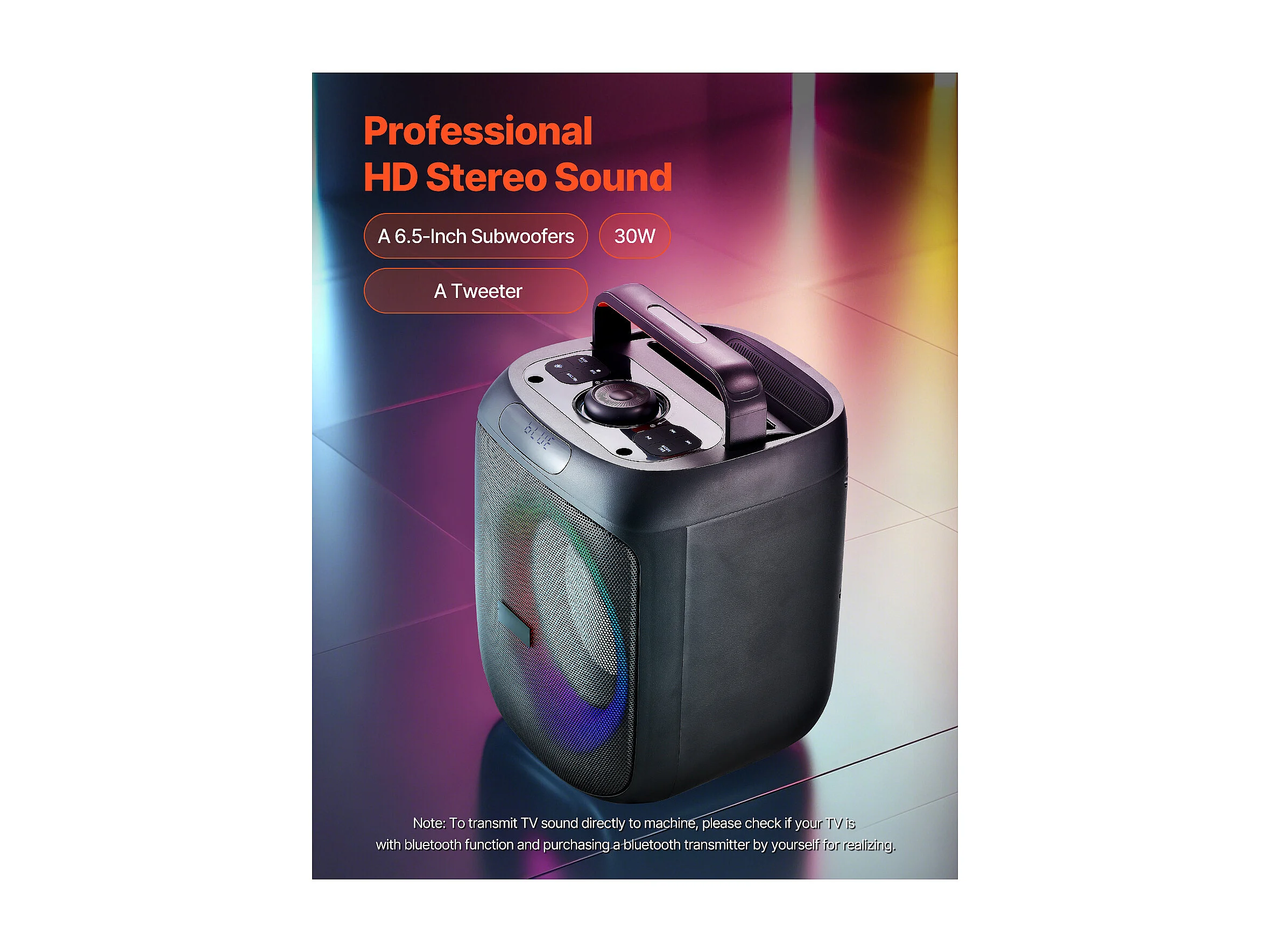 Karaoké pour Adultes SucceBuy, 30 W, Enceinte Bluetooth Portable de 6,5 Pouces avec 2 Microphones Sans Fil, Lumière LED, Fonction TWS, Poignée