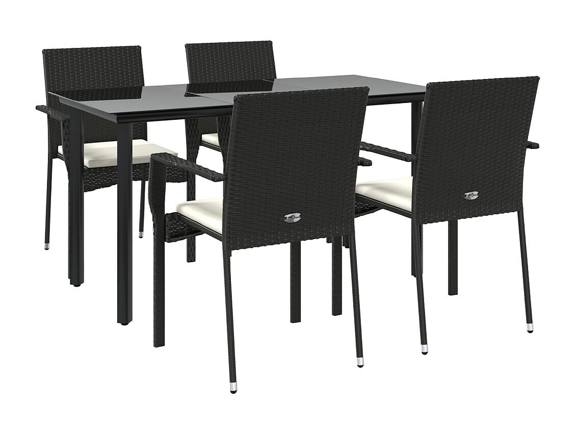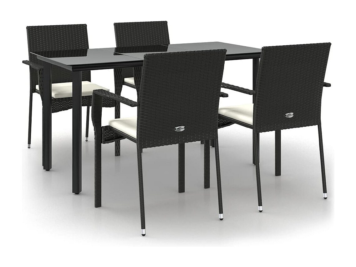 Karl Mason Ensemble à manger de jardin coussins 5pcs Noir Résine tressée