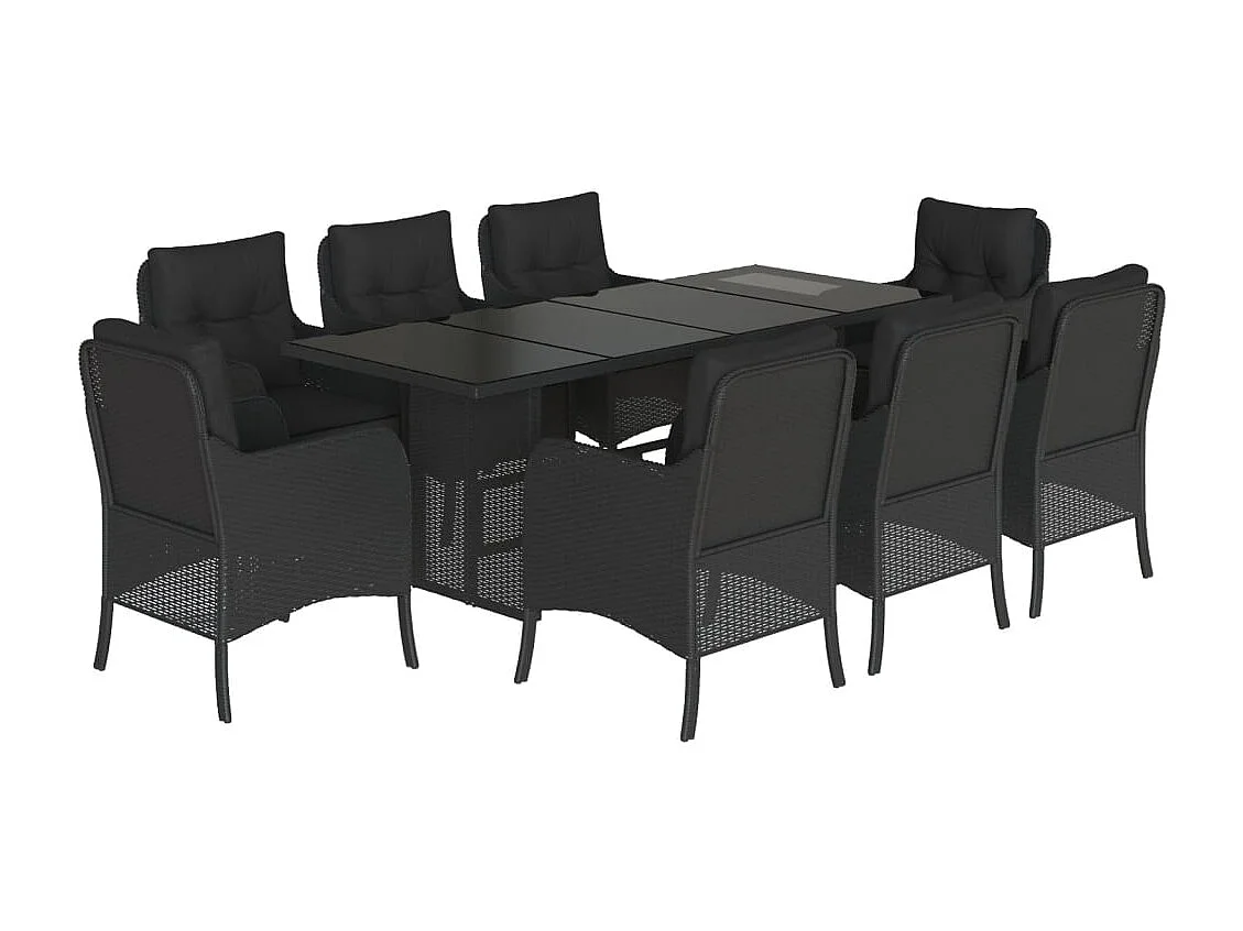 Karlyn Ensemble à manger de jardin 9pcs coussins noir résine tressée