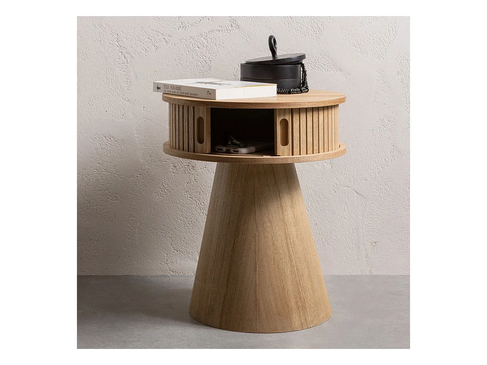Karri - Table de chevet 2 portes coulissantes en bois - Bois clair