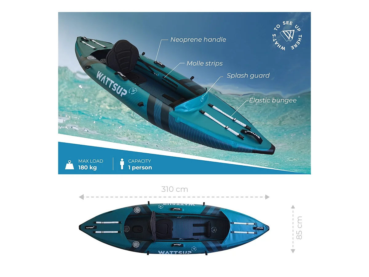 Kayak gonflable Wattsup COD 1 - 1 place - 310x85cm - Max 180kg - PVC/Dropstitch - 1 places
