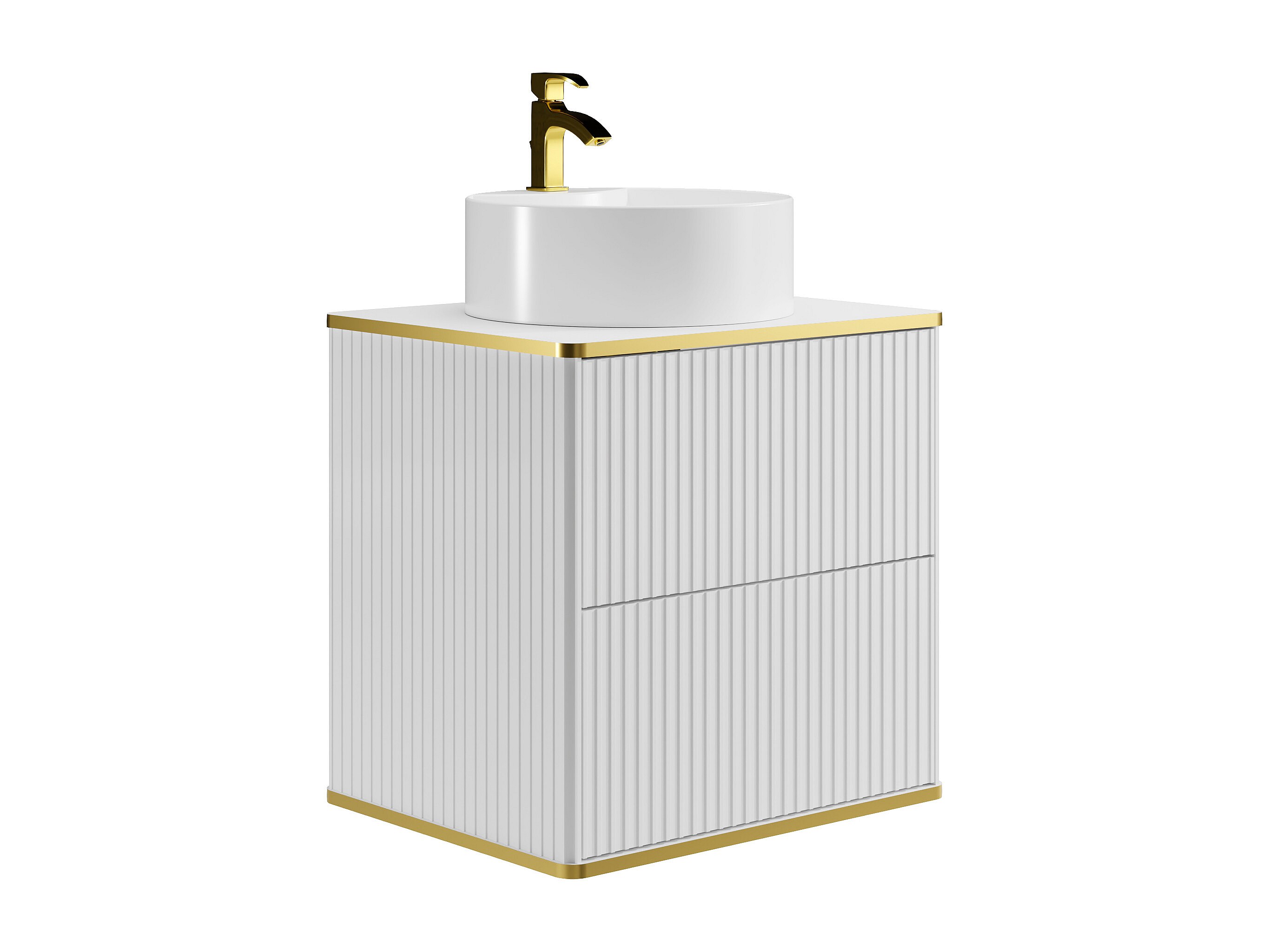 Meuble de salle de bain suspendu strié avec vasque à poser ronde et colonne - Blanc - 60 cm - KELIZA
