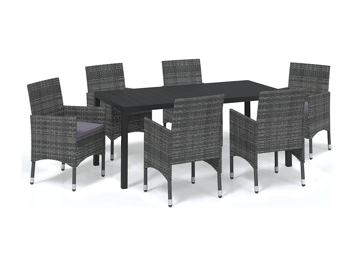Kelly Ensemble à manger de jardin coussins 7pcs Résine tressée Gris