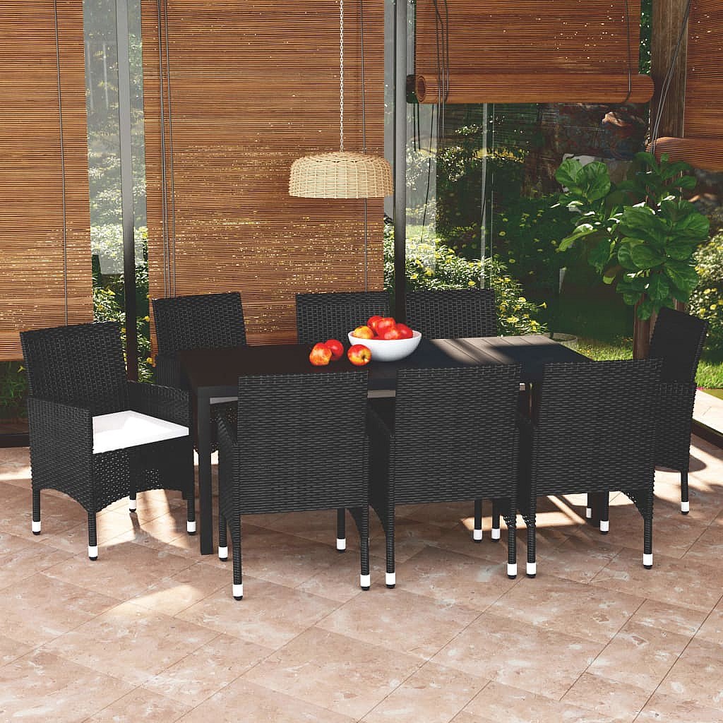 Kelly Ensemble à manger de jardin coussins 9pcs Résine tressée Noir