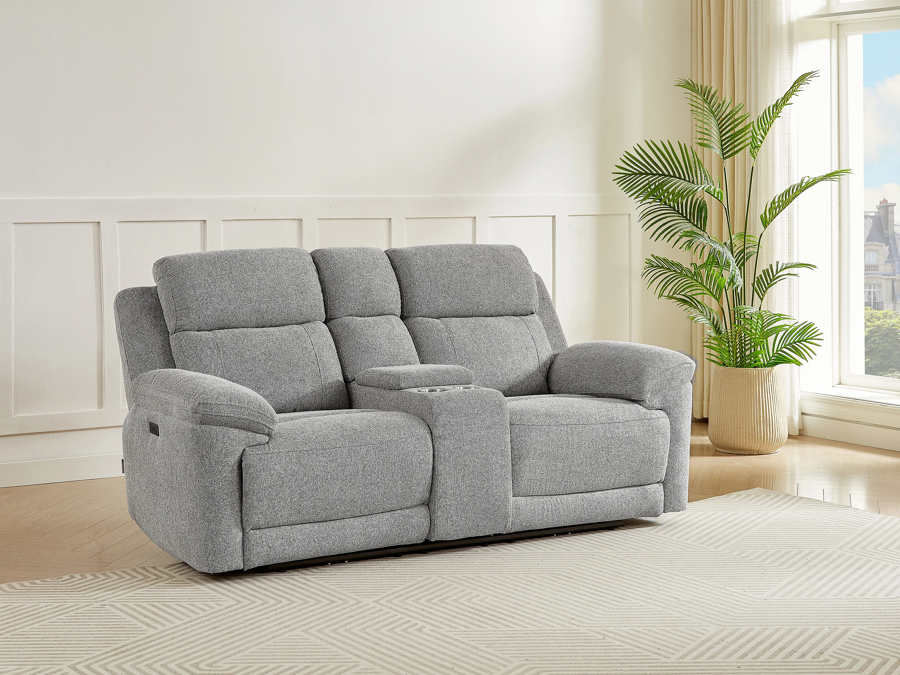 Canapé 2 places relax électrique avec tablette en tissu chiné gris KELUNO