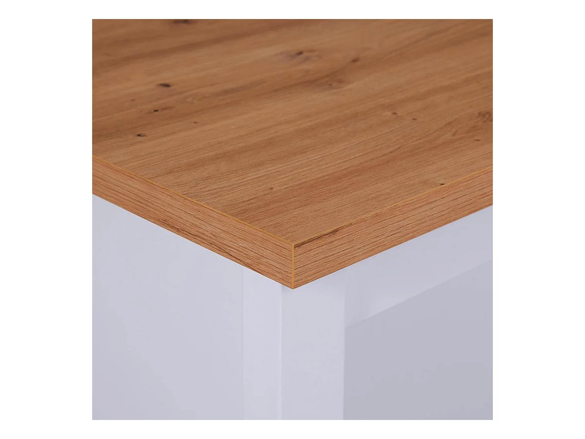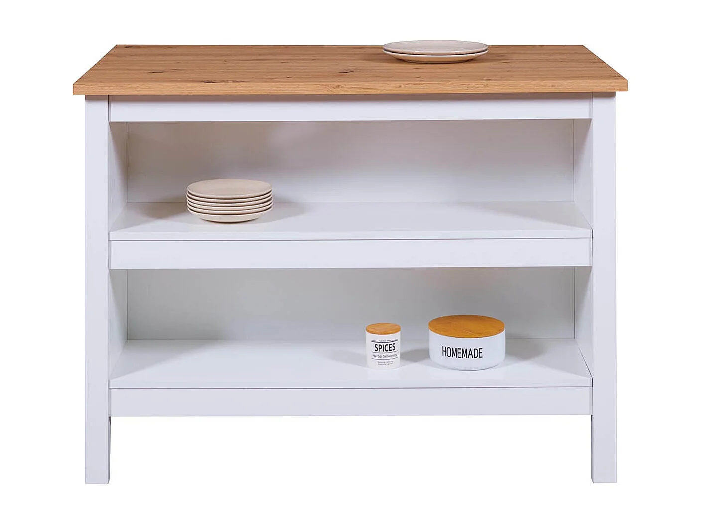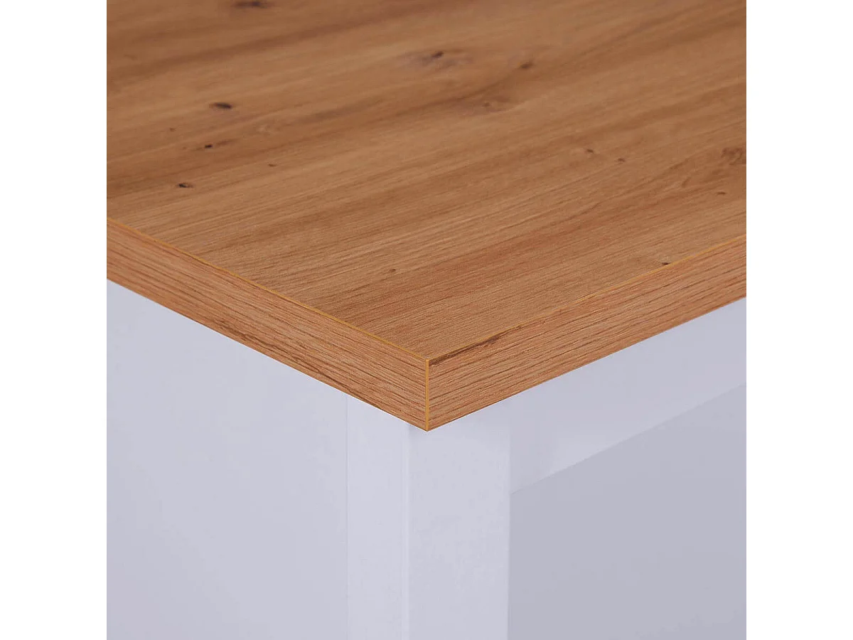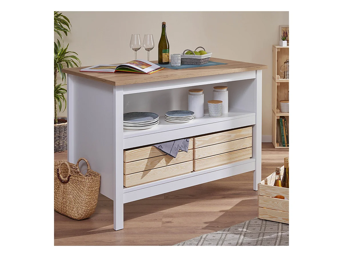 KENNY - Ilot de Cuisine Blanc et Plateau Effet Bois