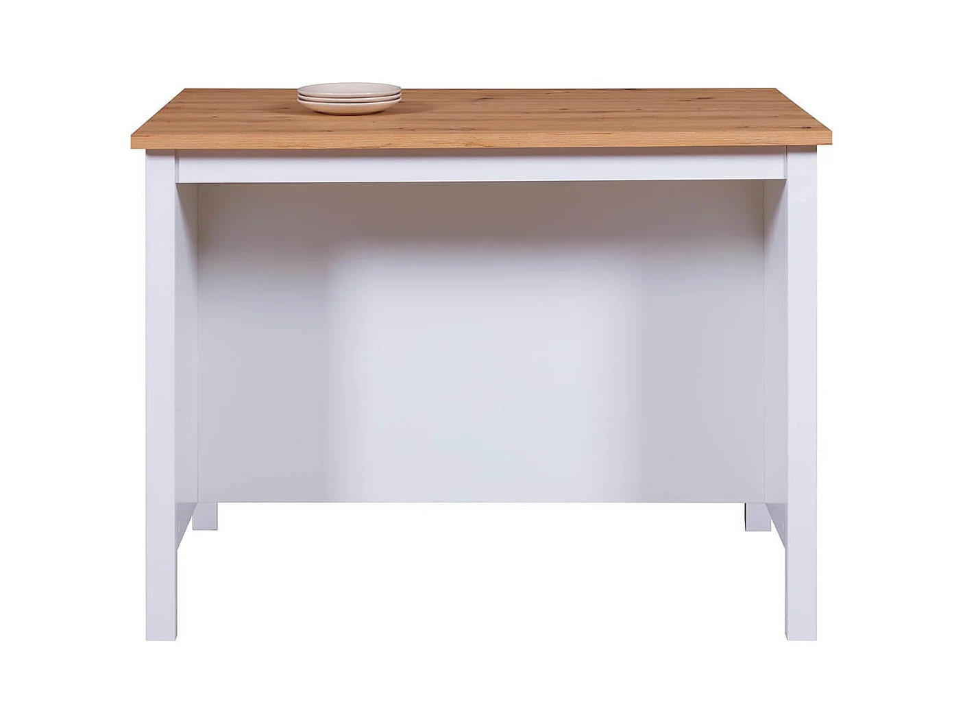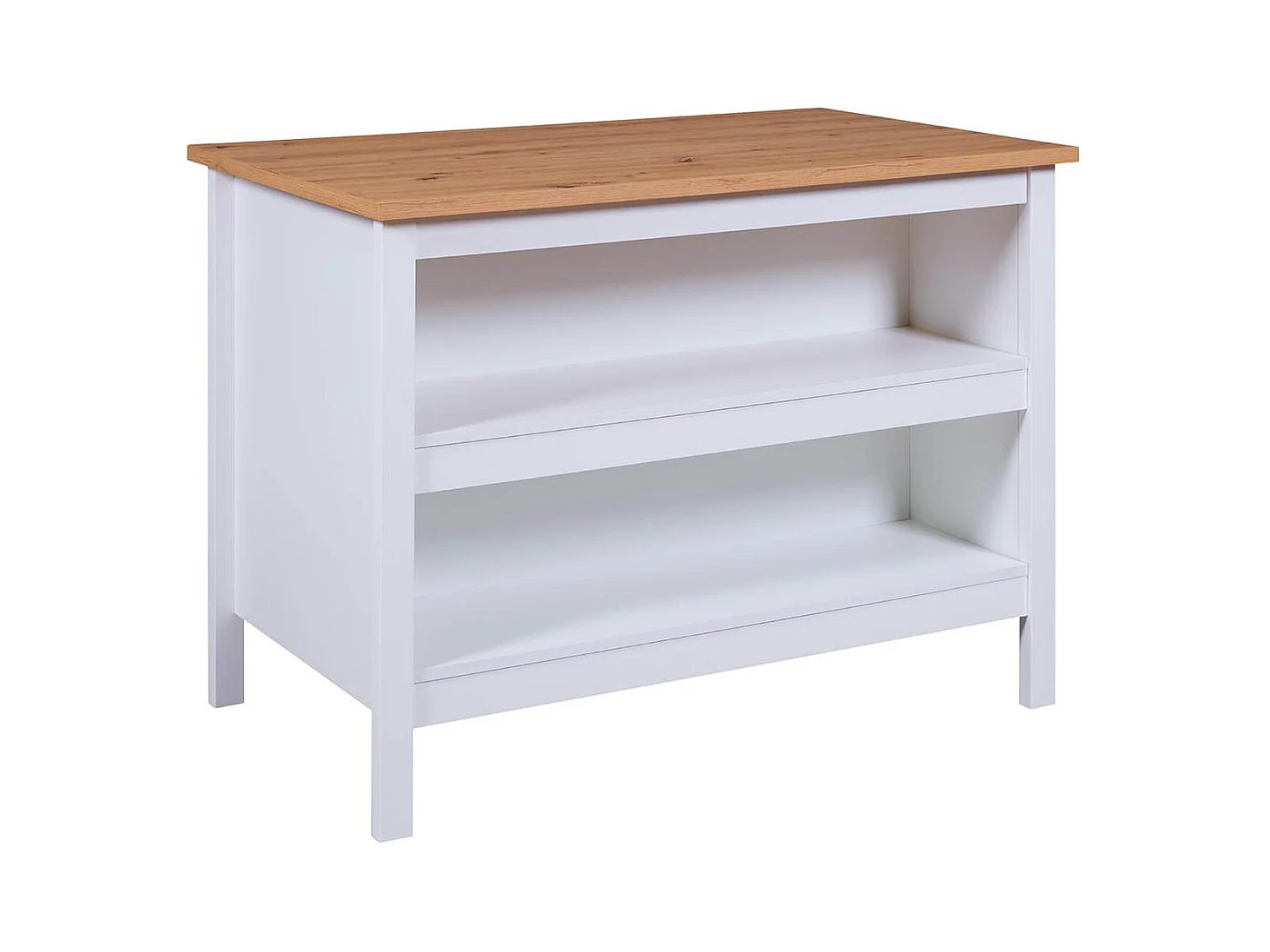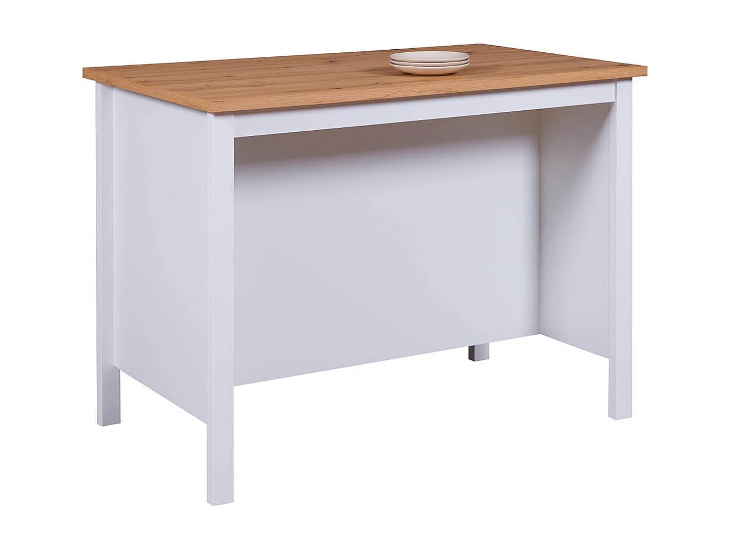 KENNY - Ilot de Cuisine Blanc et Plateau Effet Bois