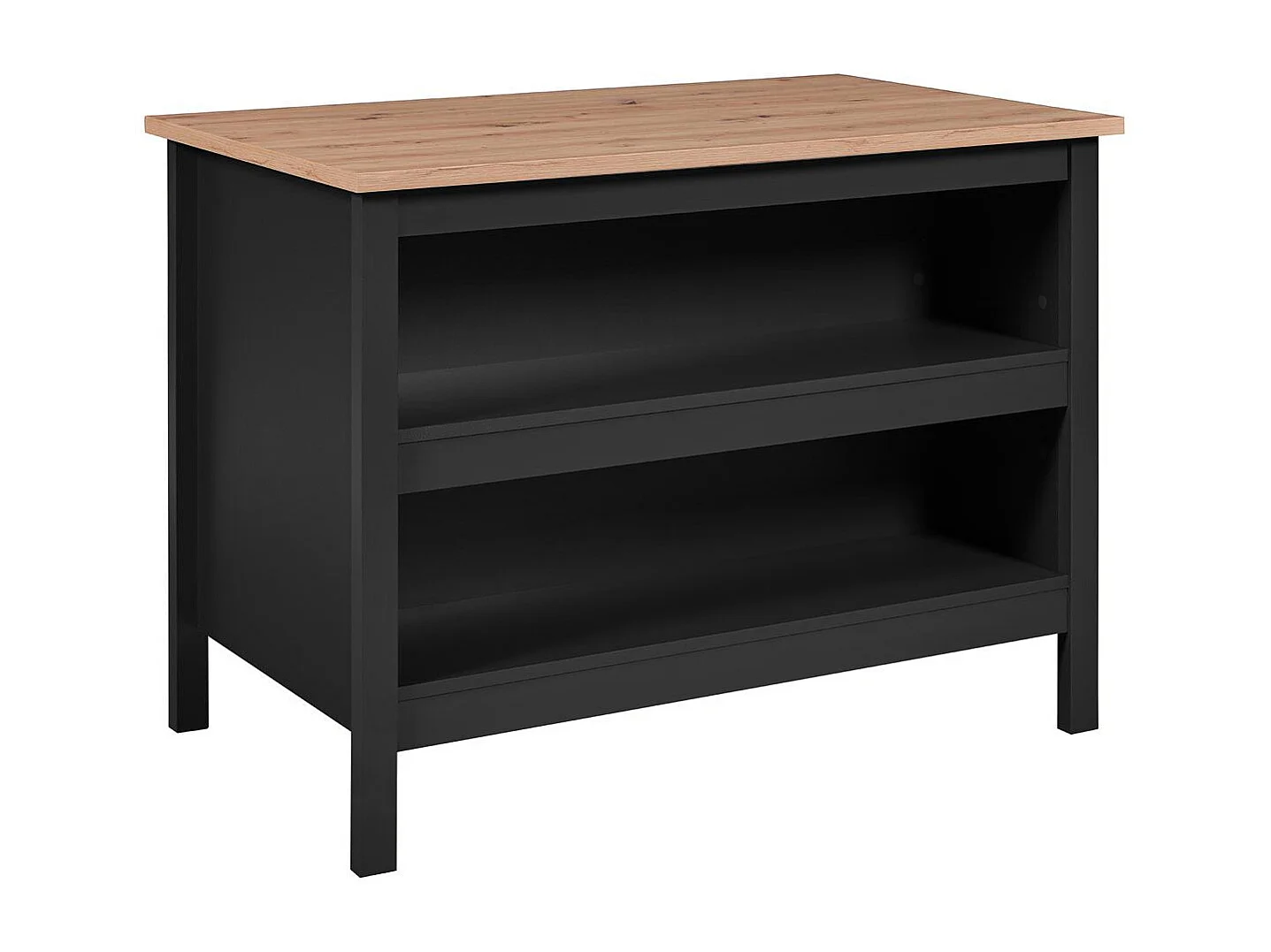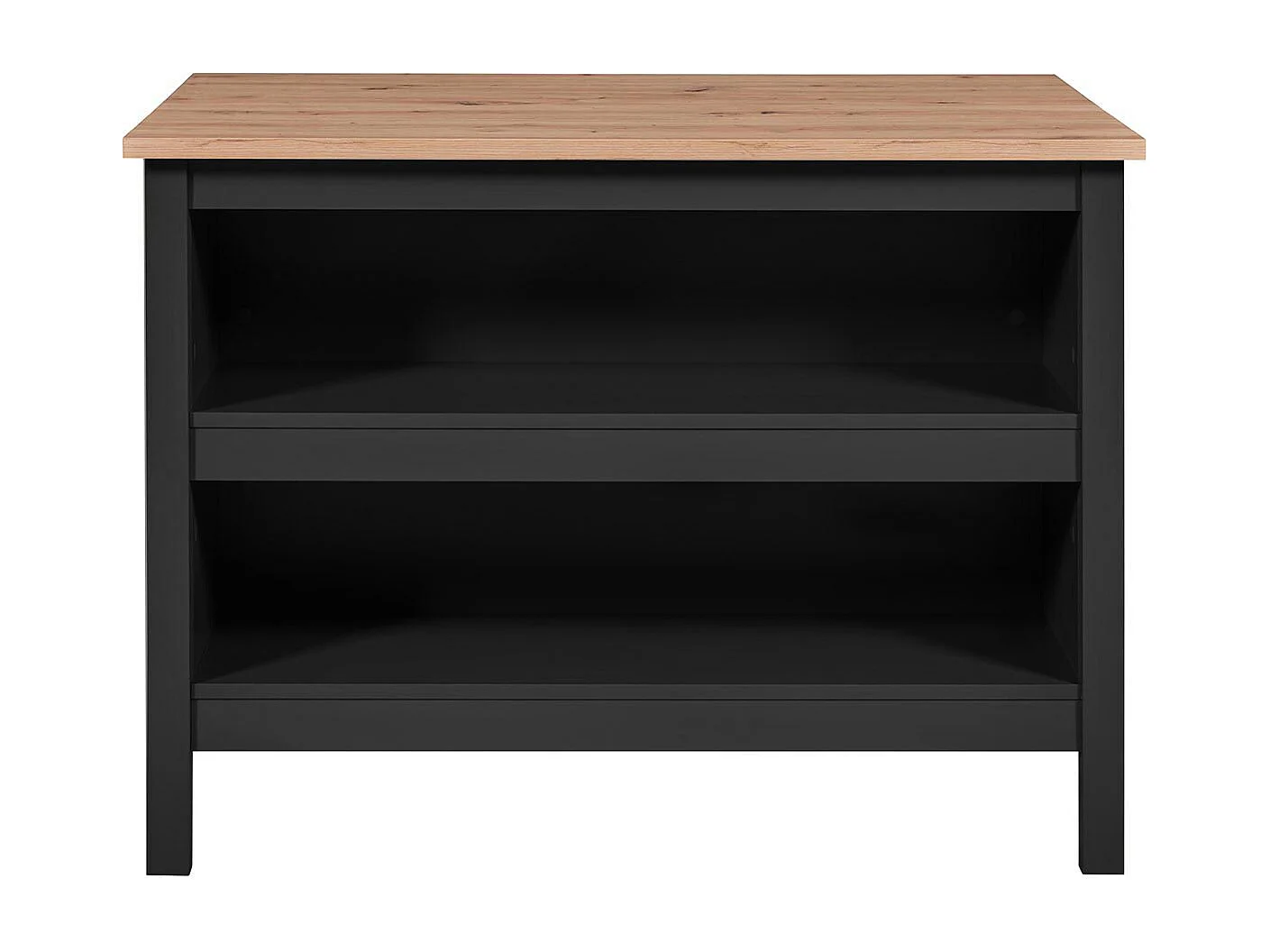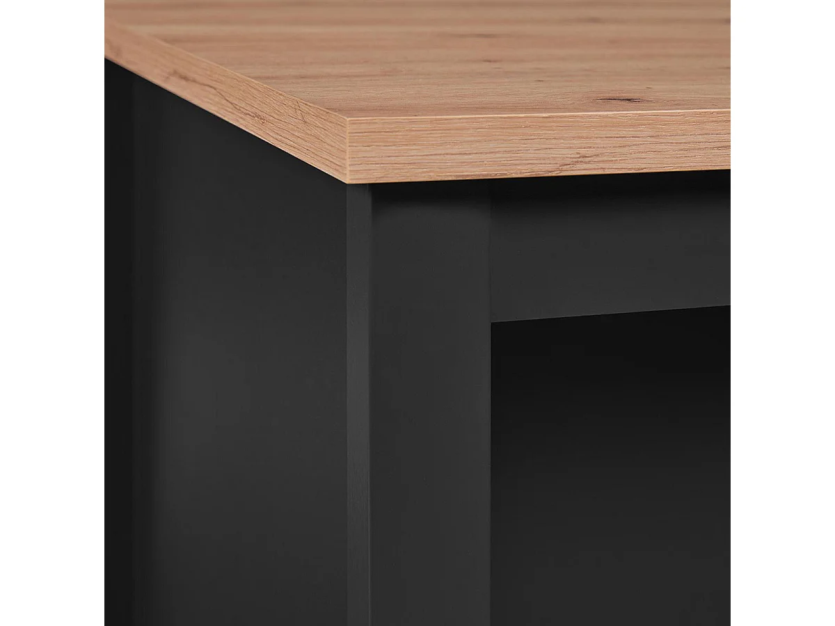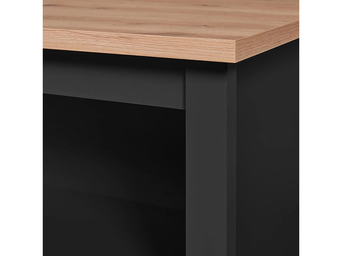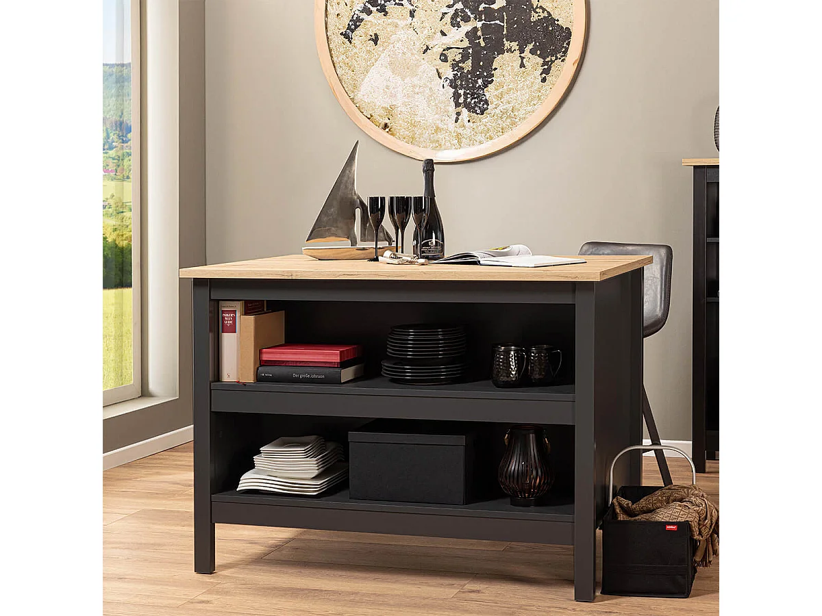 KENNY - Ilot de Cuisine Noir et Plateau Effet Bois