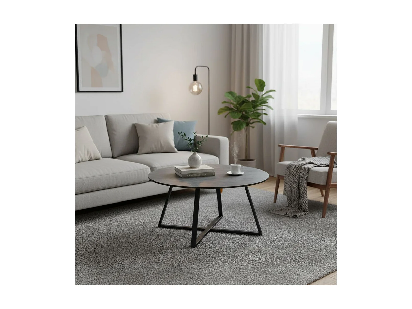 KERIA - Table Basse Ronde Aspect Céramique Grise