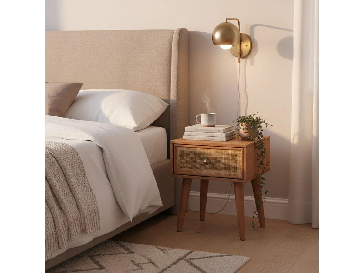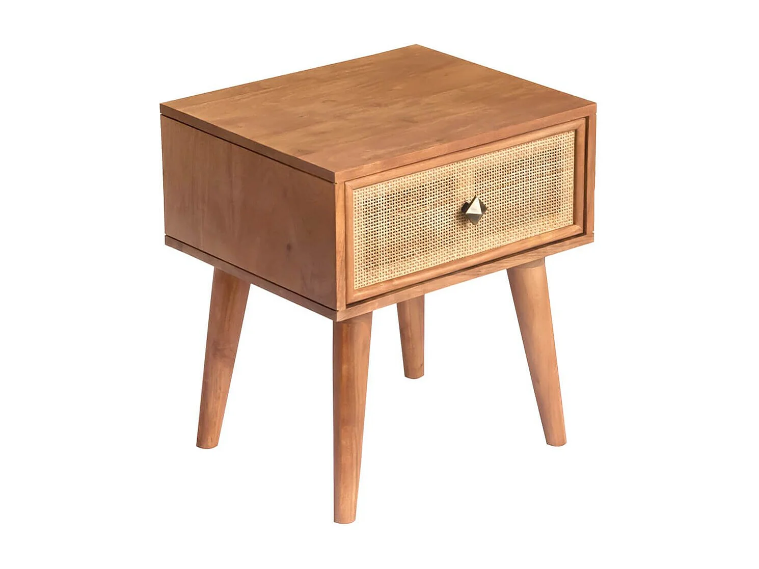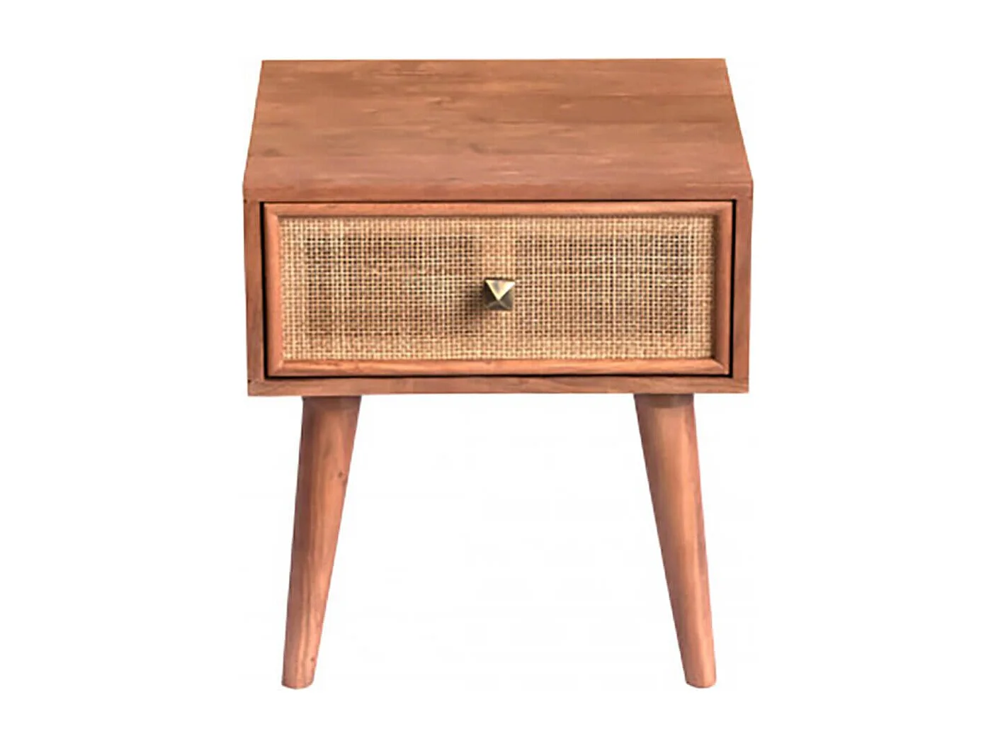 KESIAH - Chevet 1 tiroir en acacia finition teinté teck avec plaquage cannage