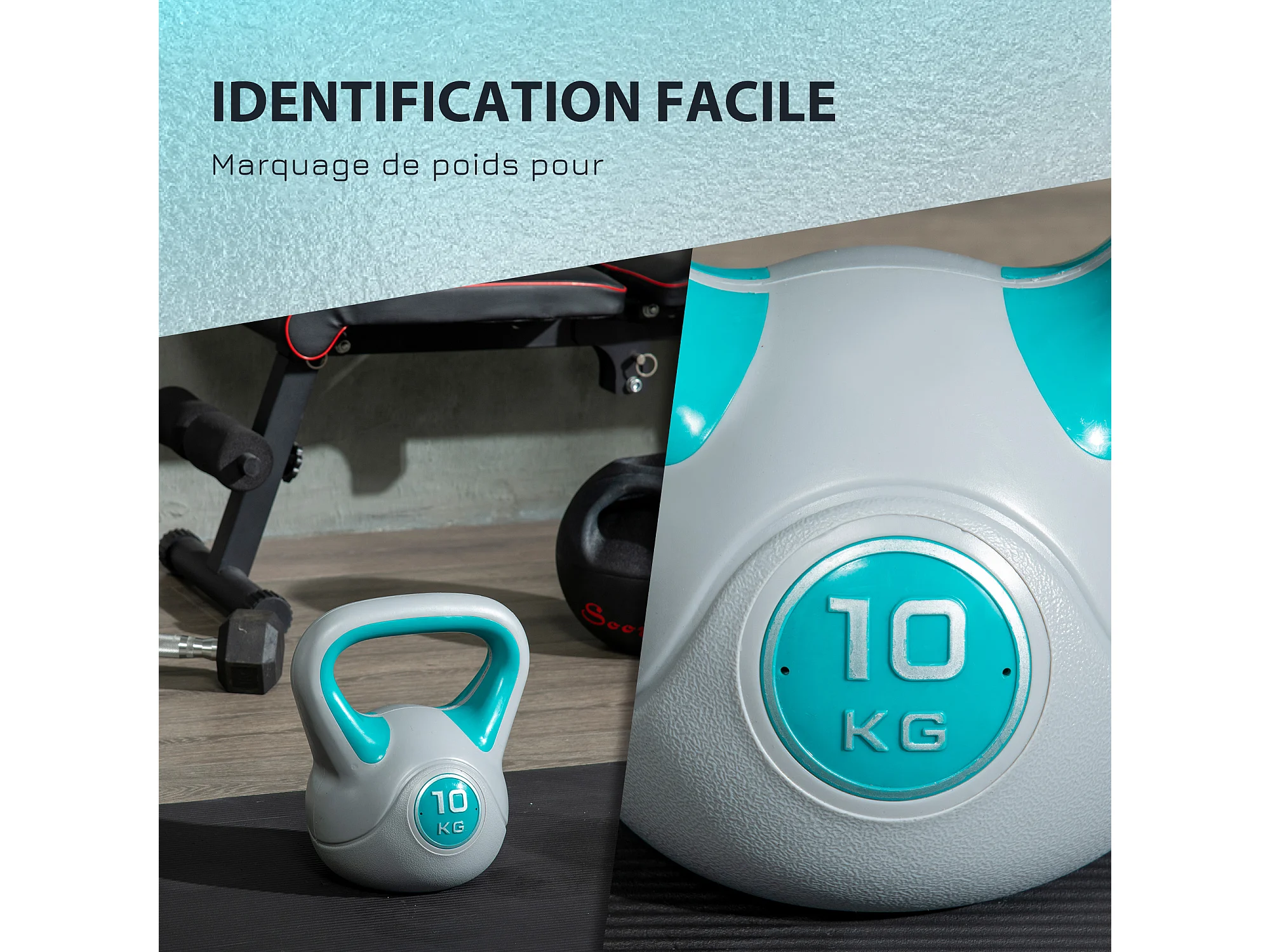 Kettlebell 10 Kg - haltère boule - poignée ergonomique - PU gris bleu