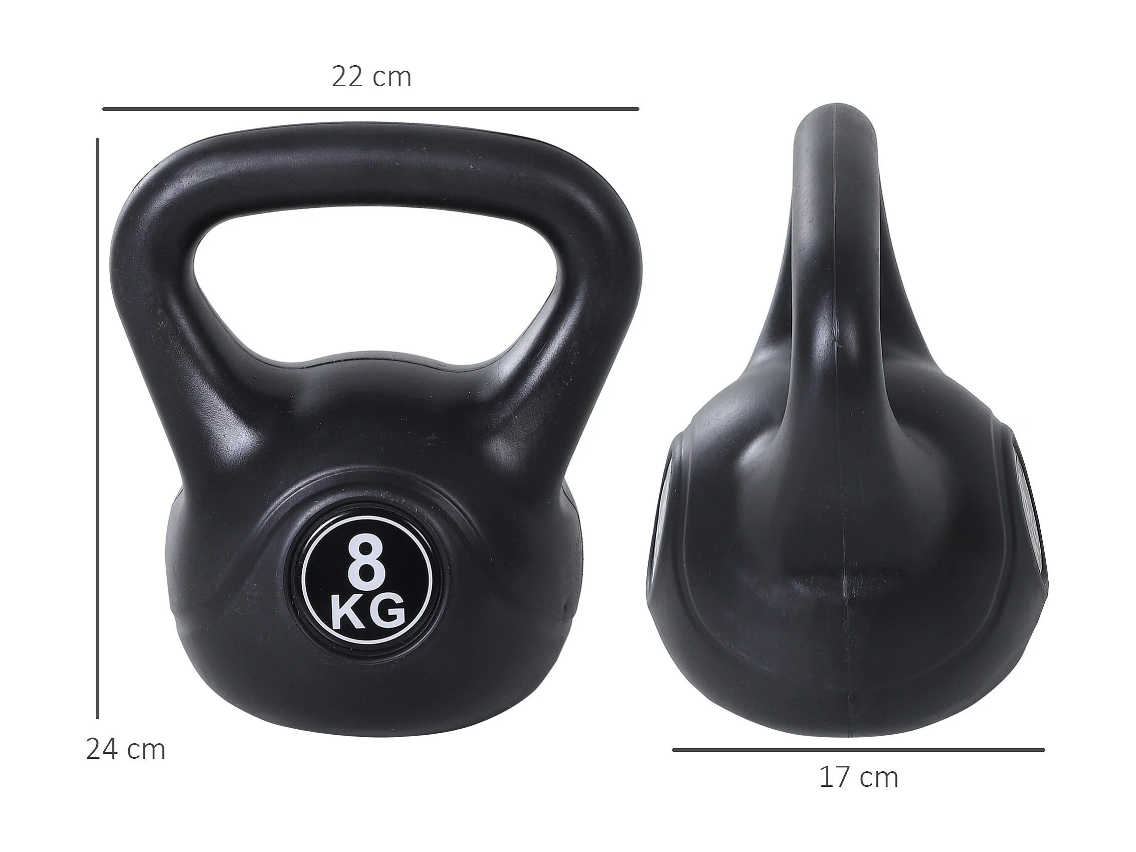 Kettlebell 8 Kg - haltère boule - poignée ergonomique - PVC noir
