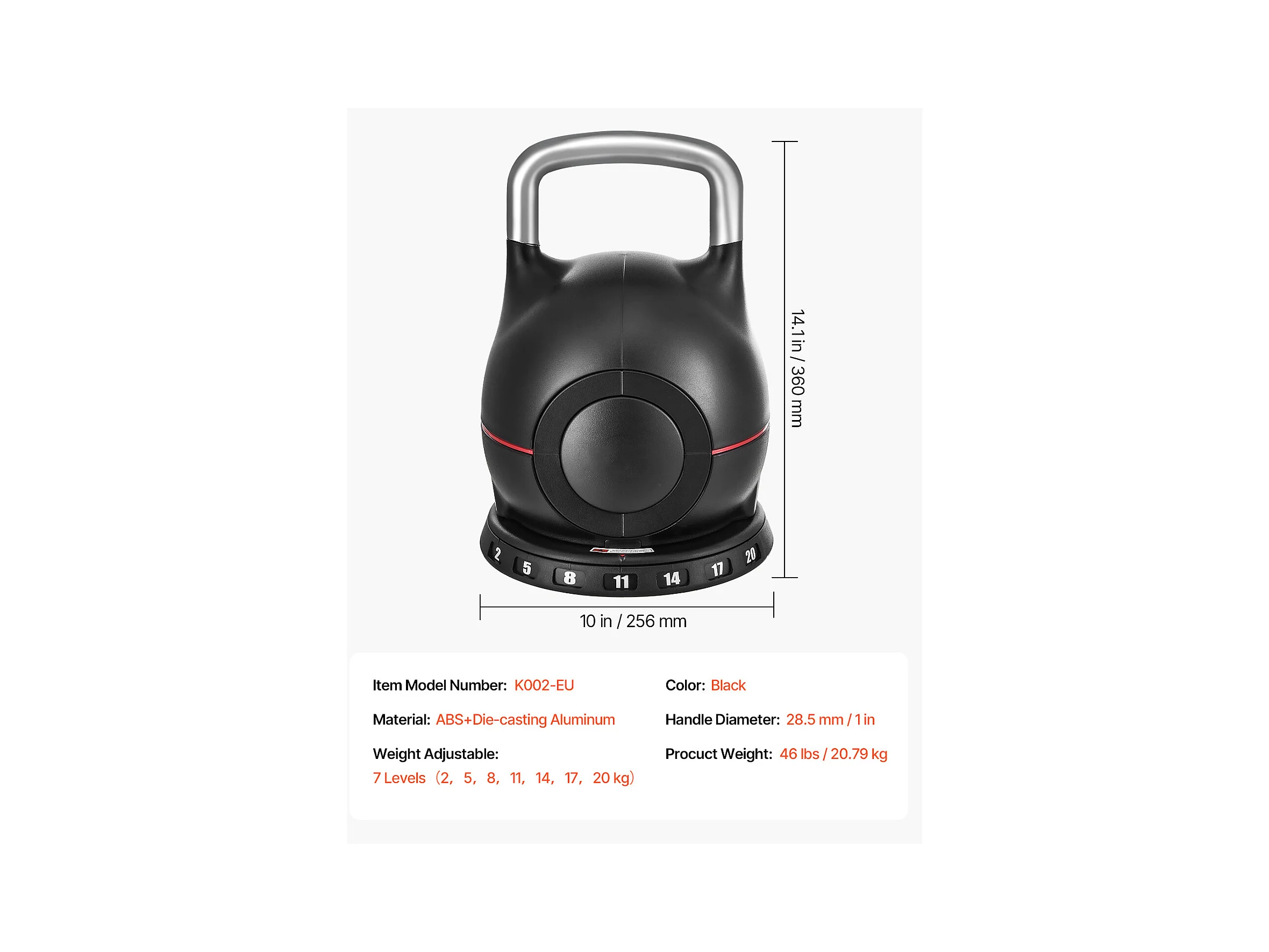 Kettlebell Réglable SucceBuy, avec 7 Niveaux de Poids, Poids de Musculation avec Poignée en Aluminium Moulé sous Pression et Matériau ABS