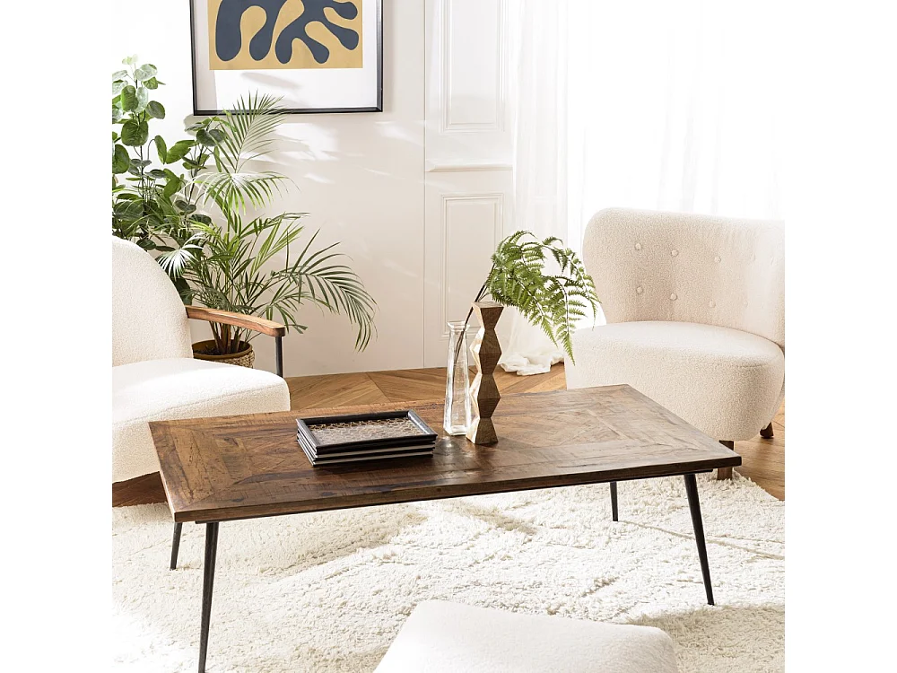 KIARA - Table basse en bois recyclé rect. 135x70cm formes géométriques
