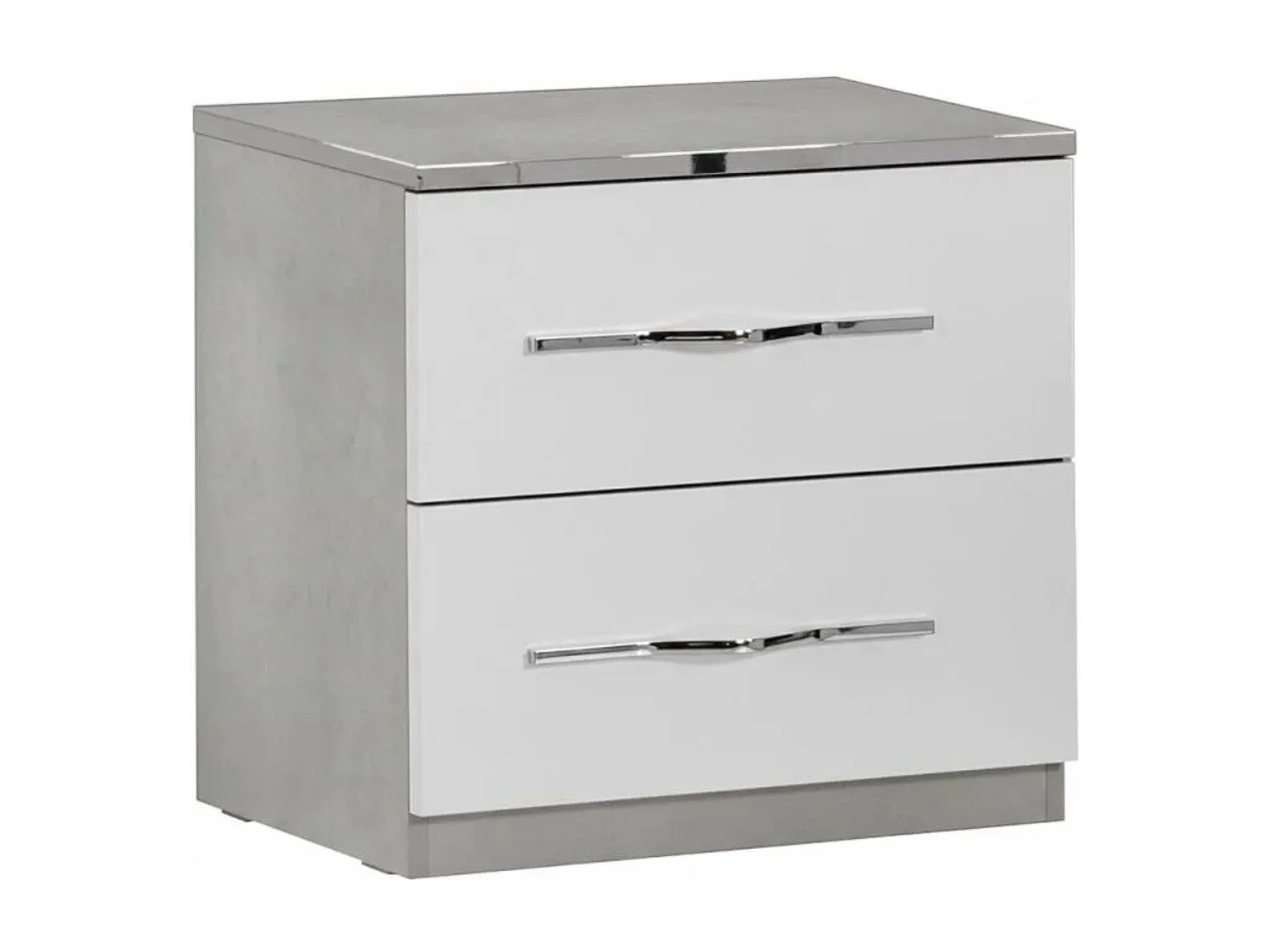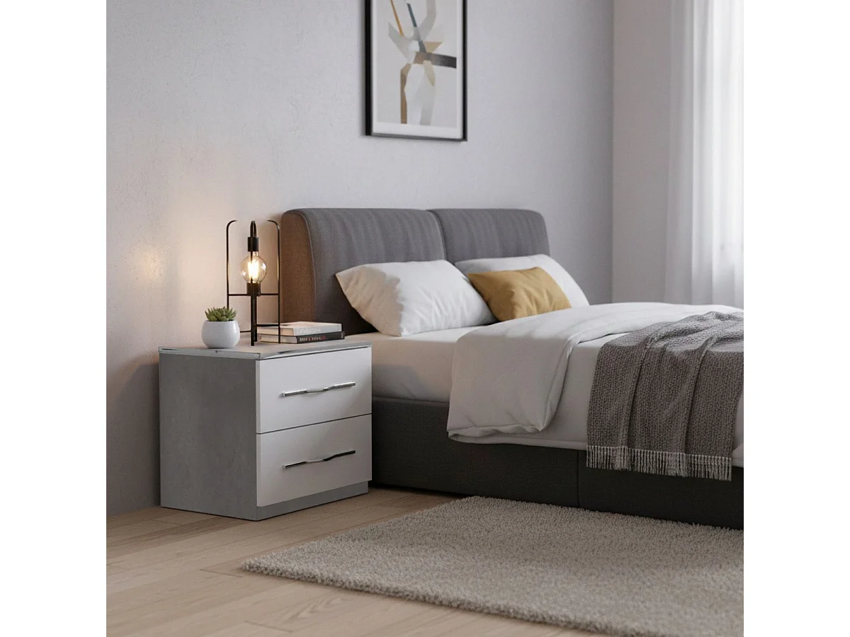 LINEAL - Chevet 2 Tiroirs Laqué Blanc et Gris Béton avec Détails Chromés