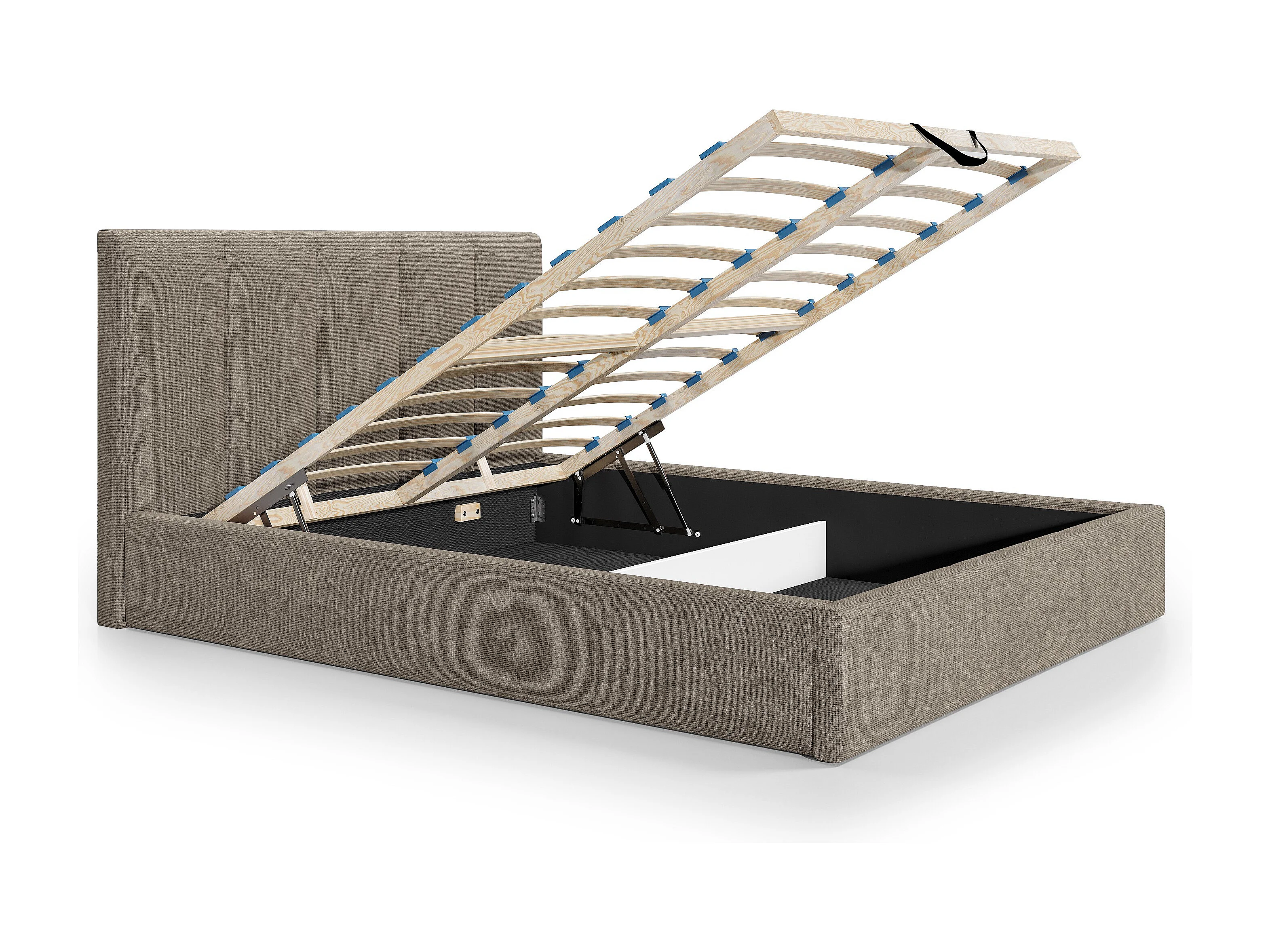 Lit coffre 160 x 200 cm avec tête de lit coutures verticales - Tissu - Taupe - Avec matelas - KILACLO