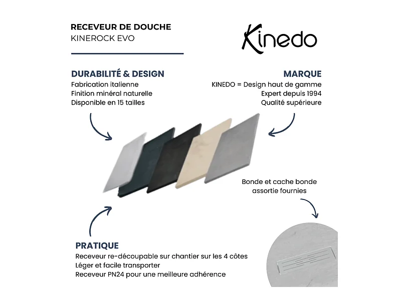 KINEDO Receveur 140 x 90 Kinerock evo biolex rectangle blanc