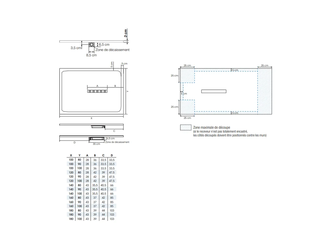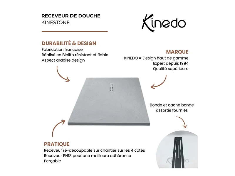 KINEDO Receveur antidérapant 160 x 90 Kinestone biolith rectangle blanc